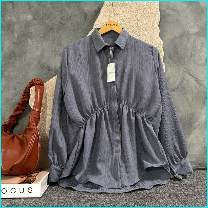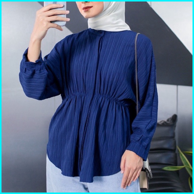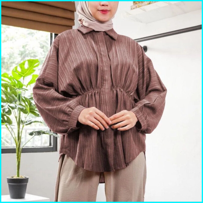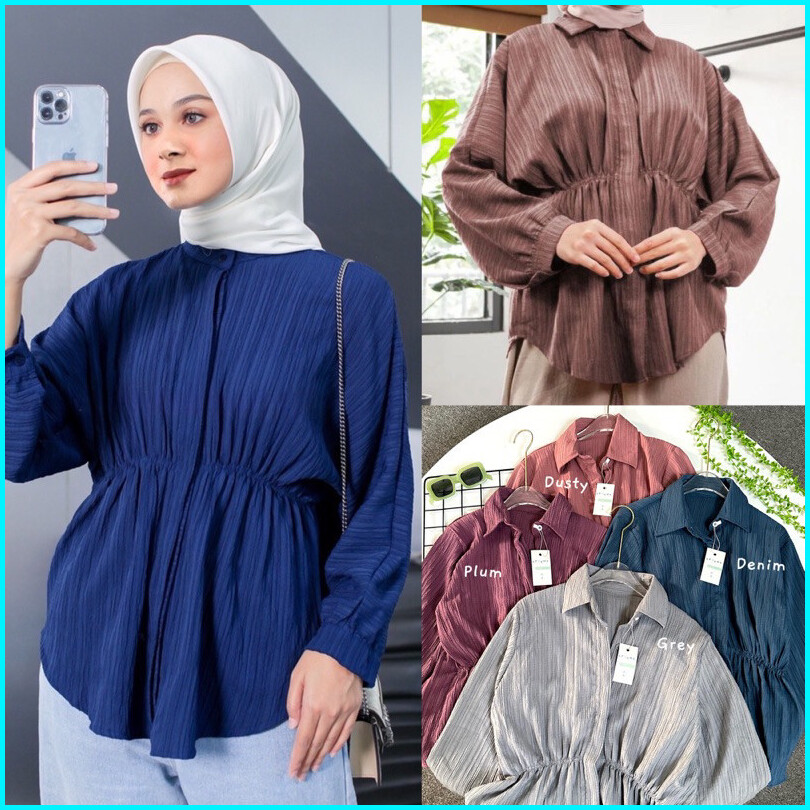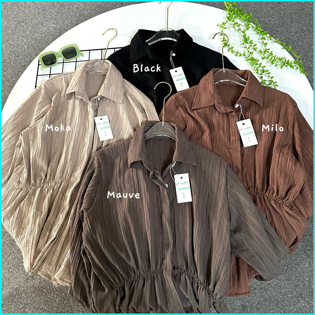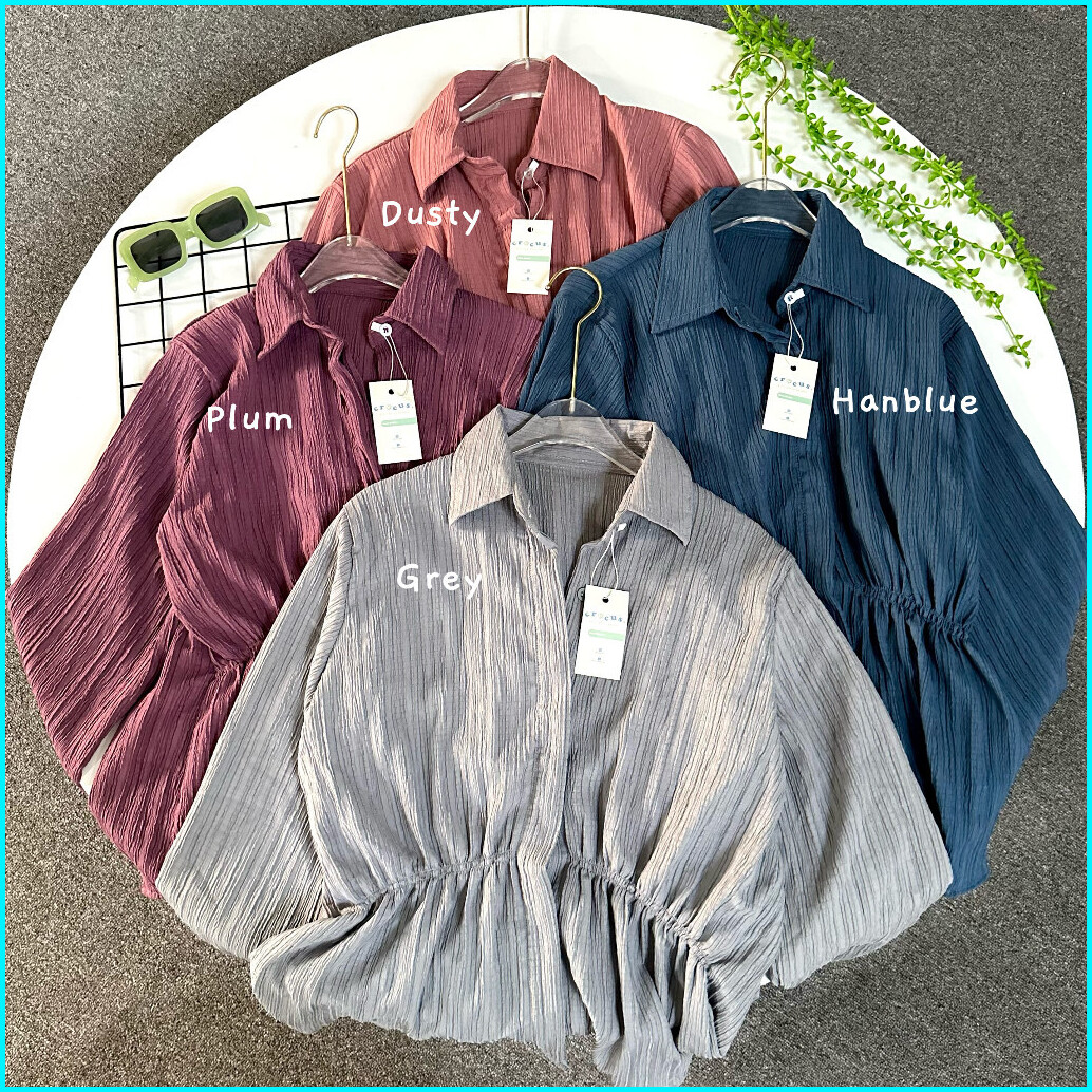Helia Ld 115cm Kemeja Kerut Oversize Lady Crush - Baju Atasan Wanita Blouse Serut