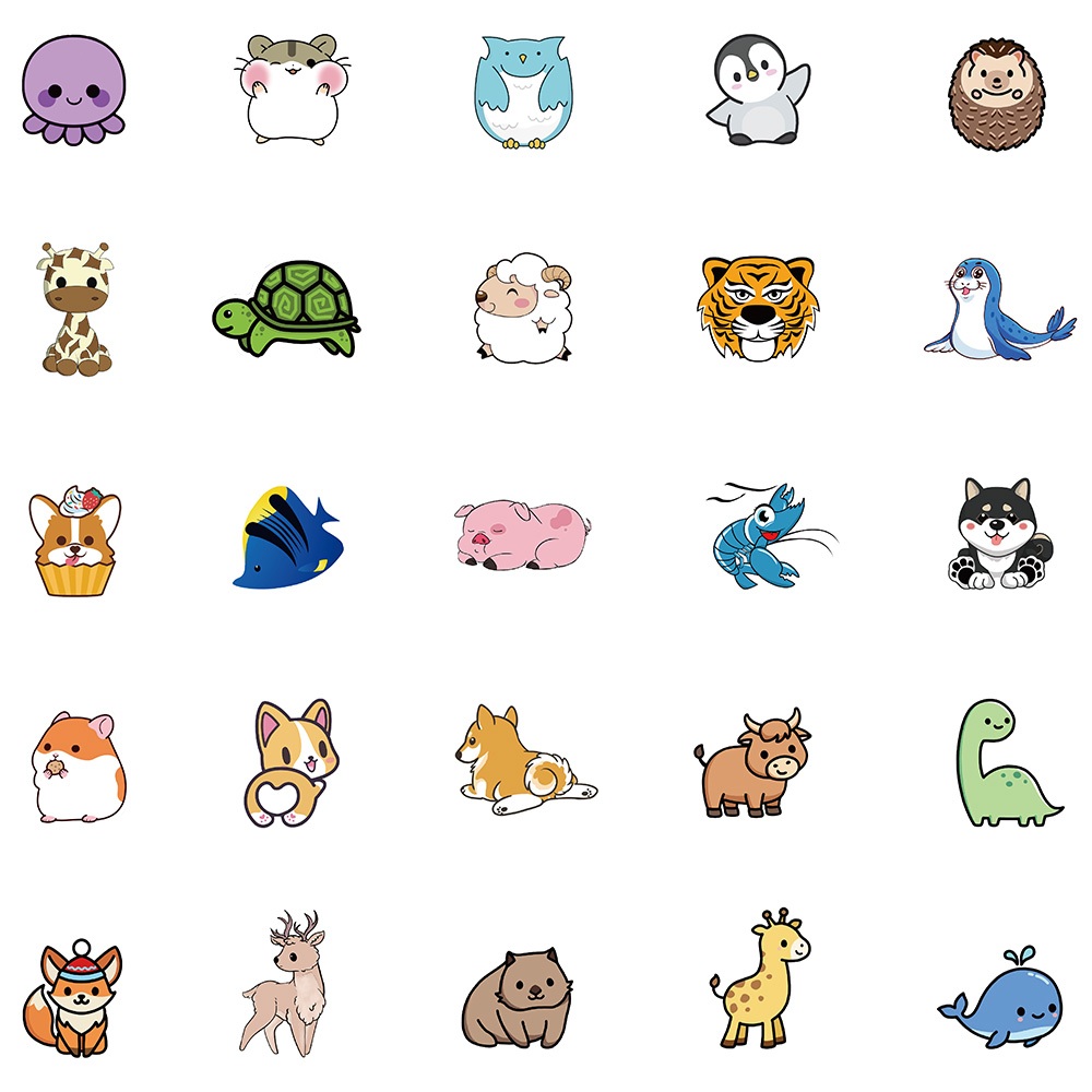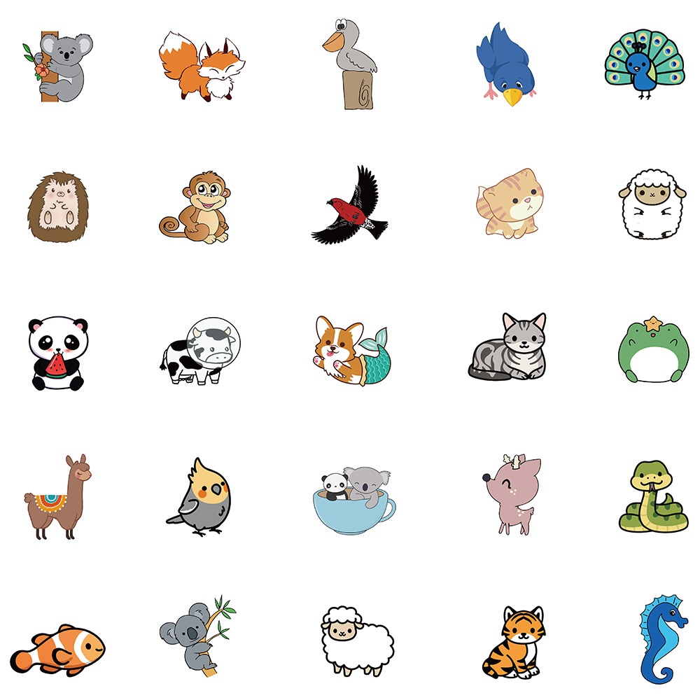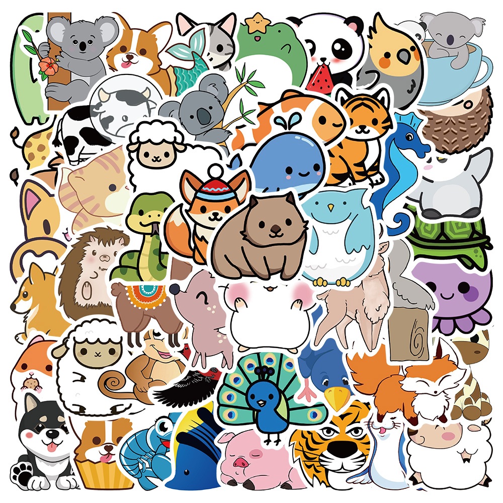 50 PCS GAYA BINATANG ALAMI LUCU STIKER UNTUK BUKU TEMPEL/BUKU HARIAN/HP/DEKORASI LAPTOP/STICKER HELM TAHAN AIR VINIL/STI