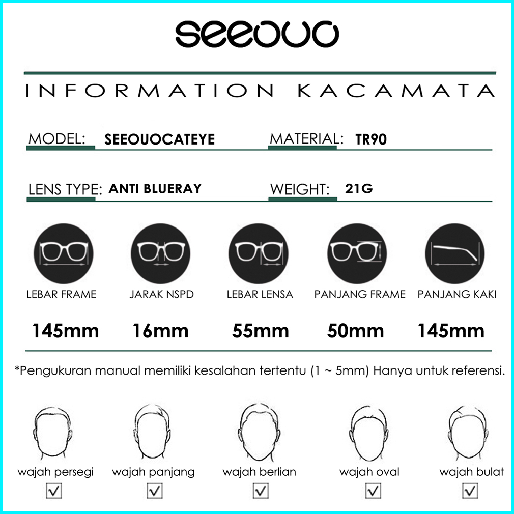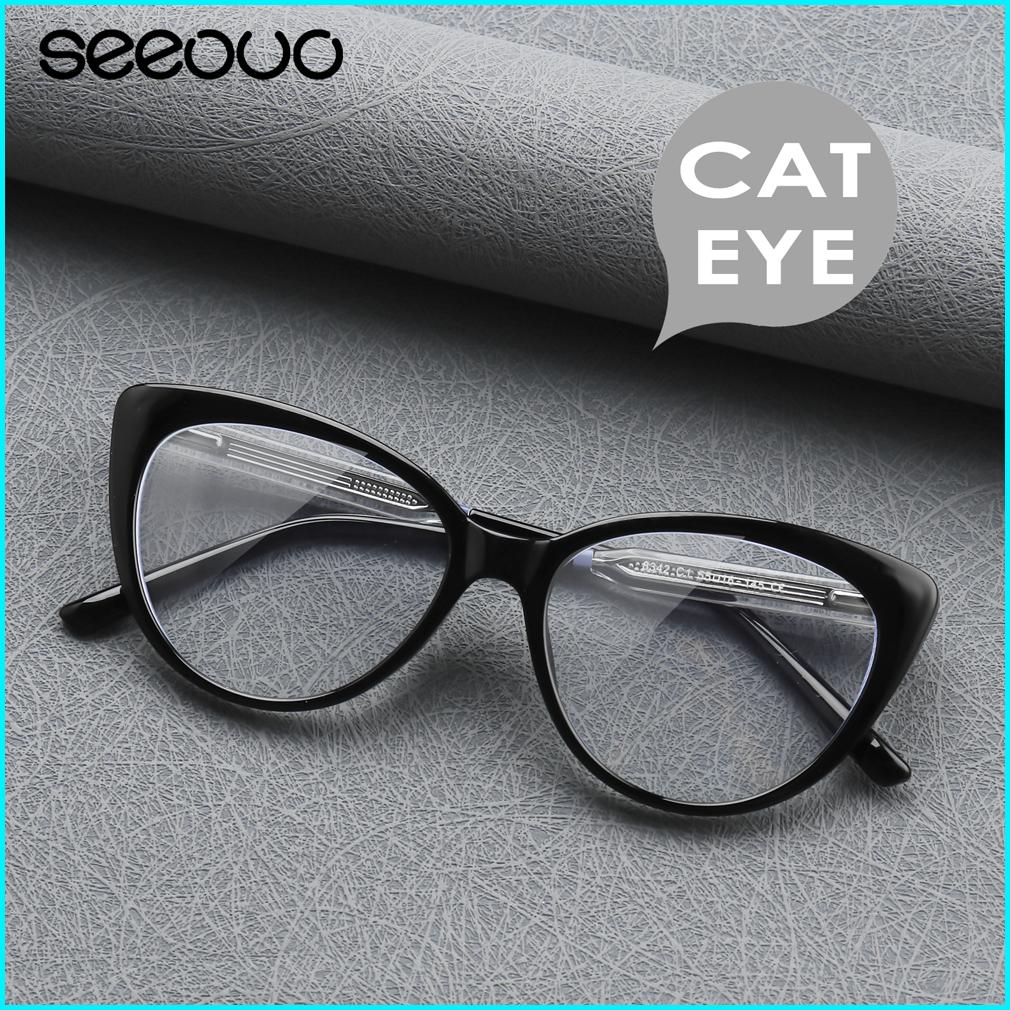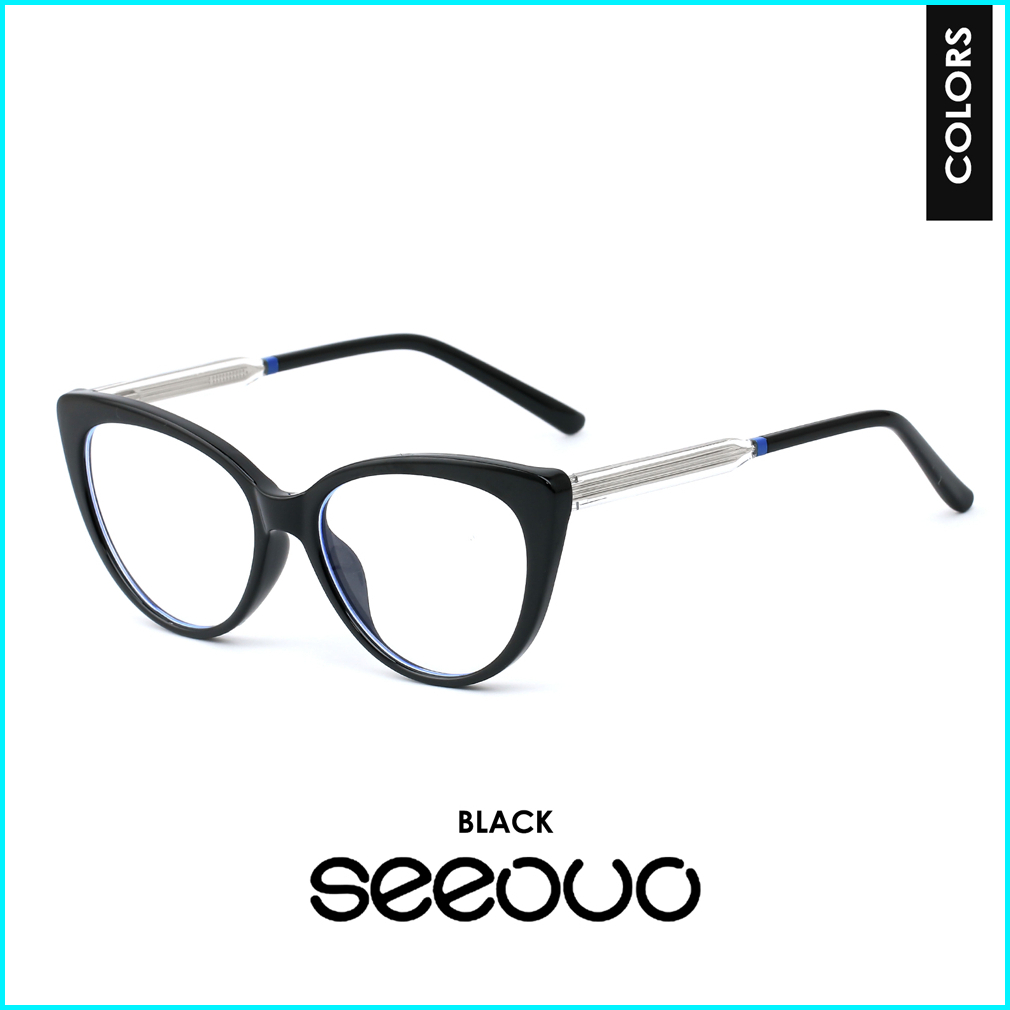 Seeouo Kacamata Antiradiasi Blueray Model Cat Eye Stylish Bahan Tr90 Ringan Kokoh Bisa Minus Wanita 8342