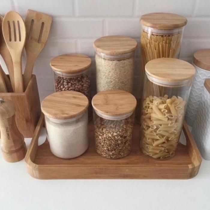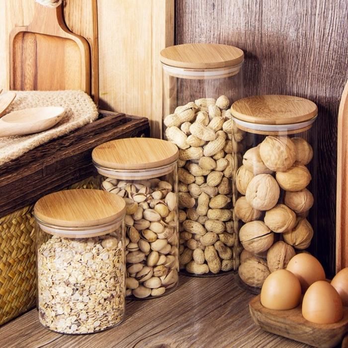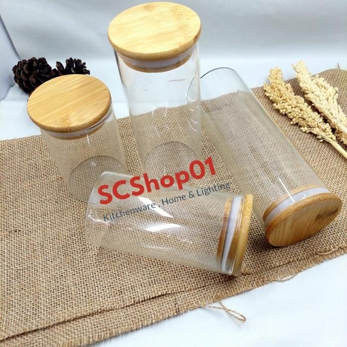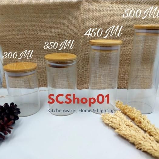 Toples Kaca dengan Tutup Kayu Glass Vintage