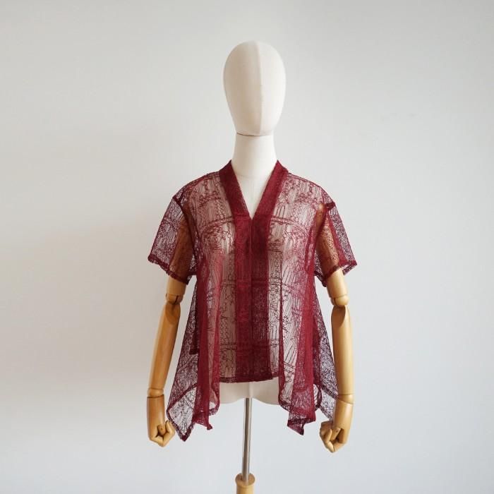 Benangsari Tiara Top Lengan Panjang Lace Brukat Kebaya Modern Blouse - MAROON PENDEK