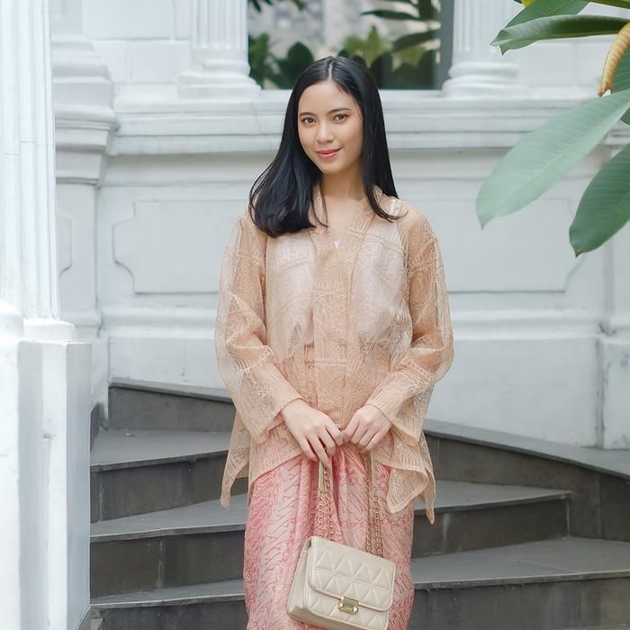 Benangsari Tiara Top Lengan Panjang Lace Brukat Kebaya Modern Blouse - DBLUE PENDEK