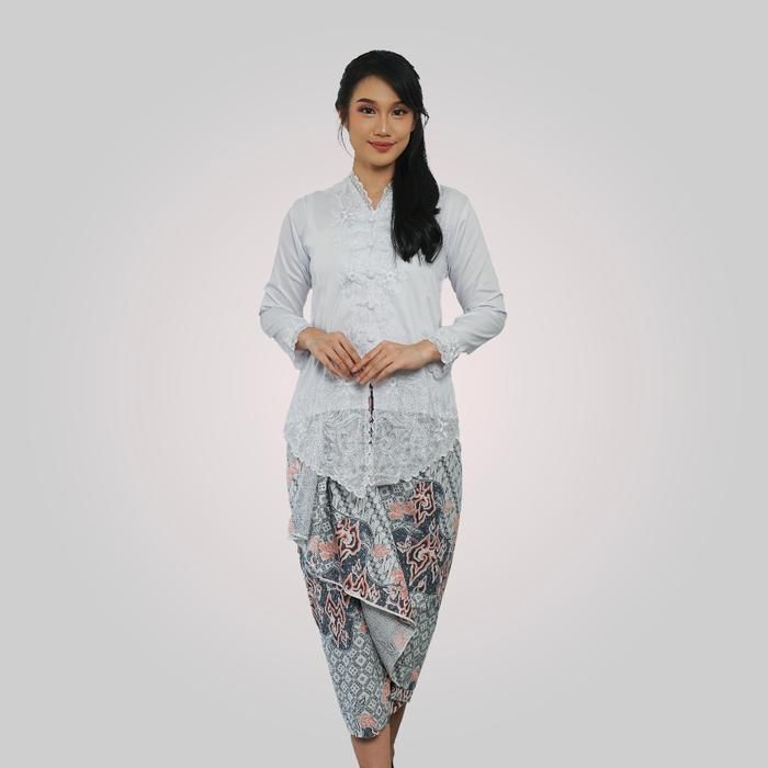 BATIK TRUSMI Set Couple Kemeja dan Kebaya Kain Lilit Citra Ck Untuk Lamaran Tunangan - KEBAYA PUTIH M