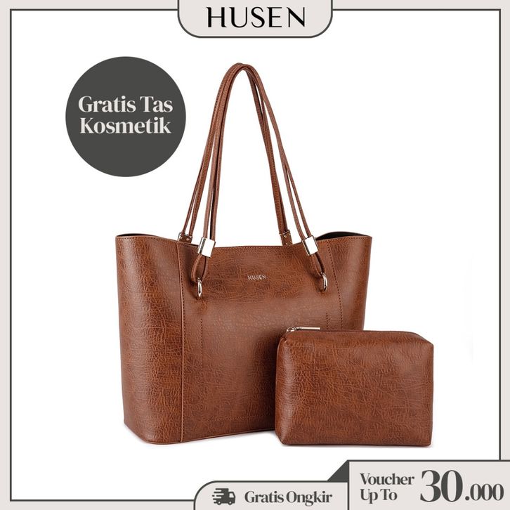 Promo HUSEN Totebag Wanita Tas Kerja Tas Wanita Tas Kuliah Tote Bag Resleting - Ashley Shiny Keren