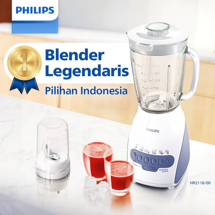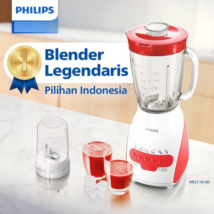 Philips Blender HR2116/60 - Blender 2 liter - Blender Philips Blender kaca 350 W - Merah