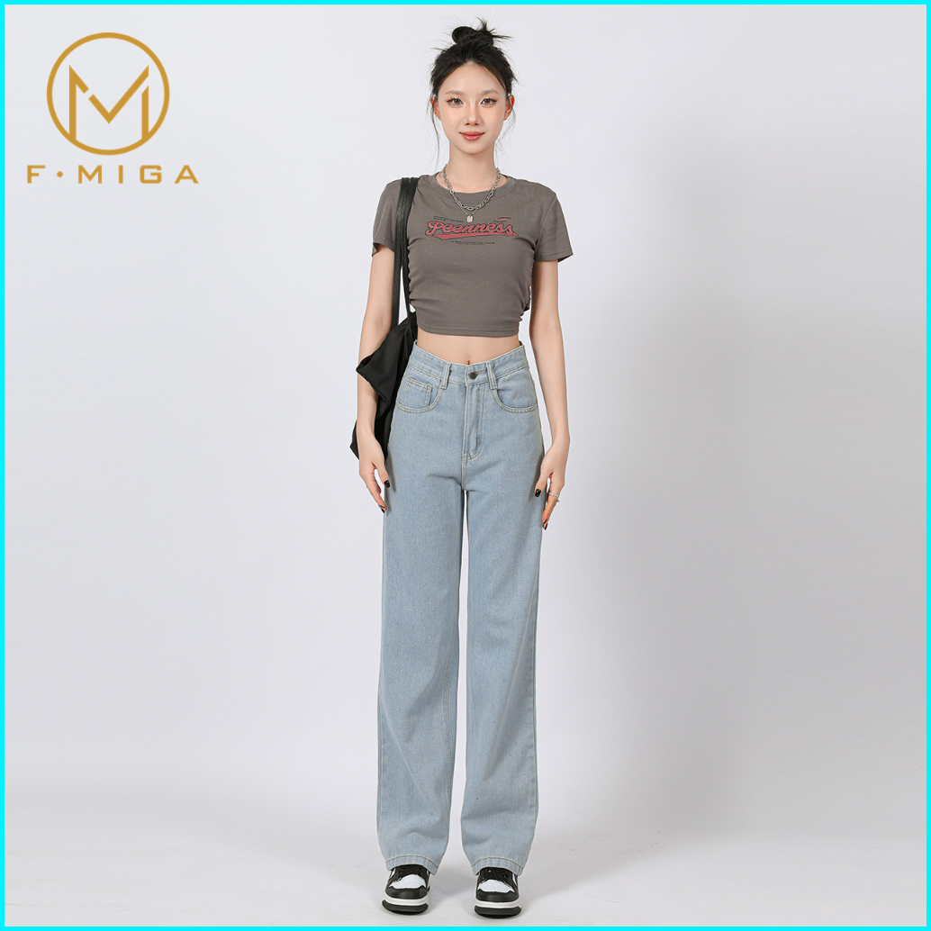 F Miga C5 Celana Kulot Jeans Wanita Korean - Light Blue