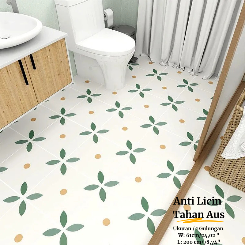 WALLPAPER KAMAR MANDI TAHAN AIR PEREKAT DIRI 2 METER LANTAI PVC WALLPAPER STIKER DINDING DEKORASI RUMAH MOTIF BUNGA BATI