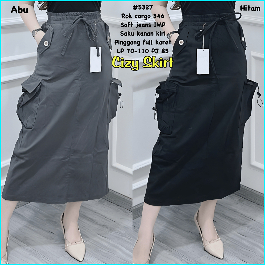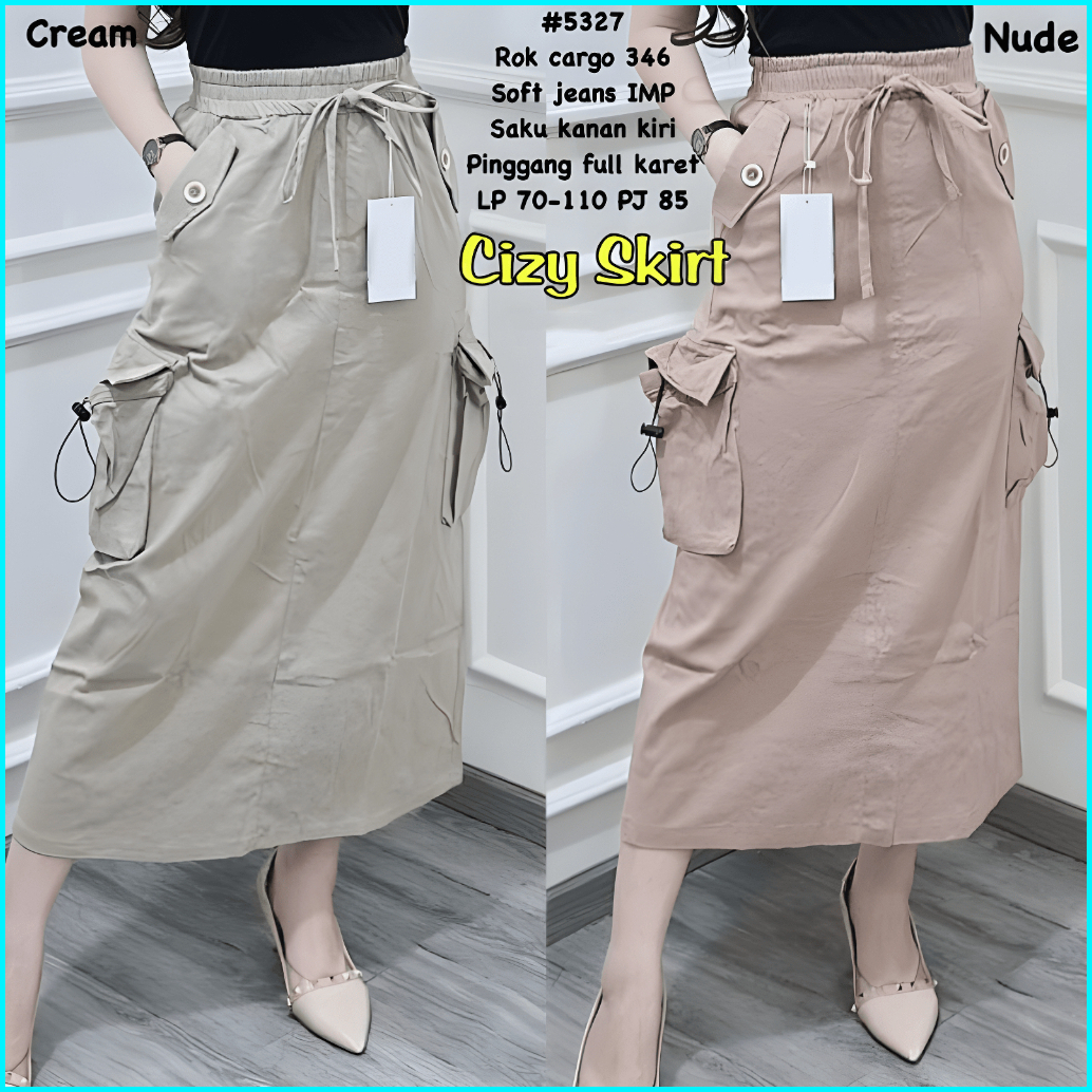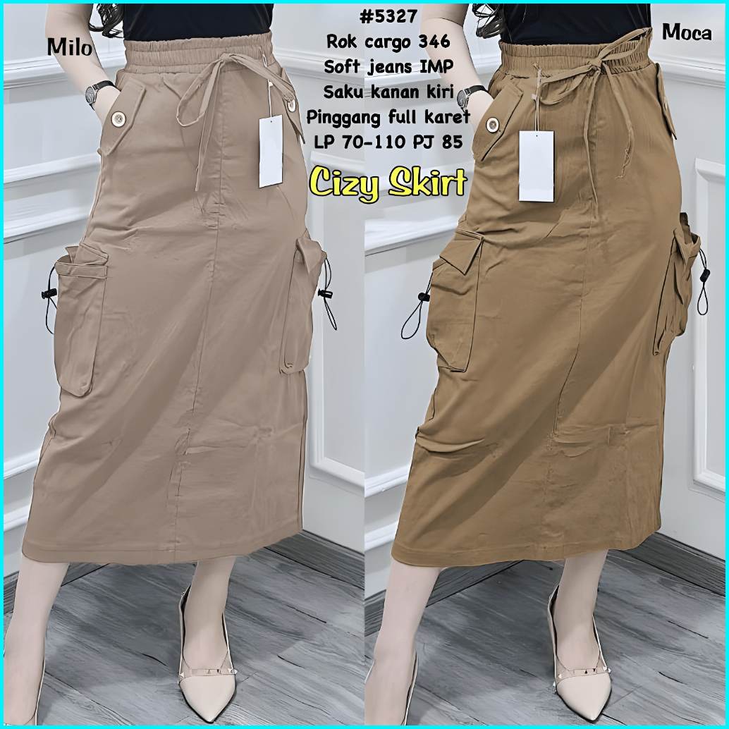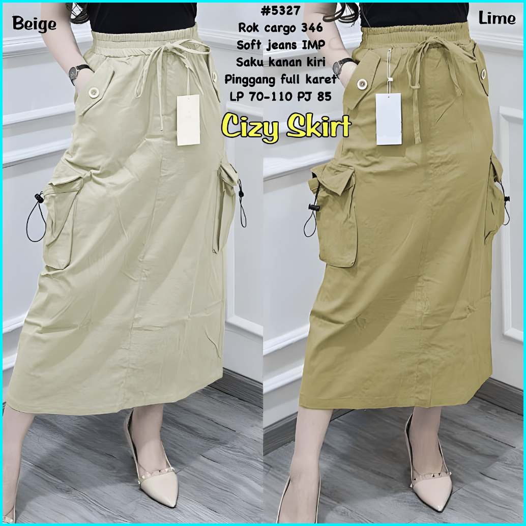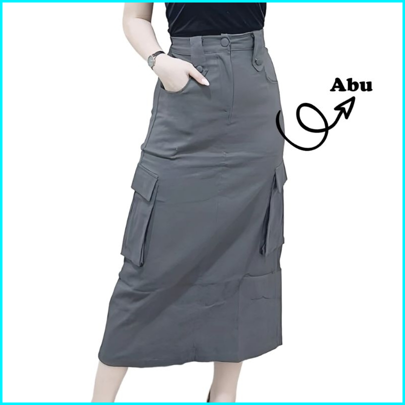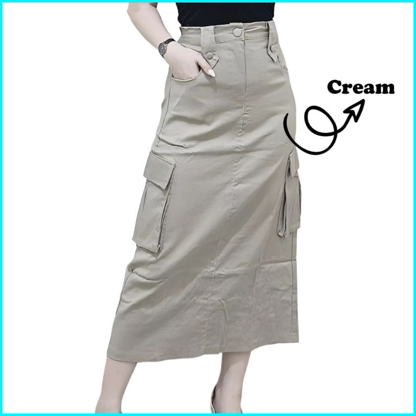 Rok Cargo Dizy Skirt Cargo Twill Combed Premium Stretch Wanita Maxi Skirt Lembut Melar