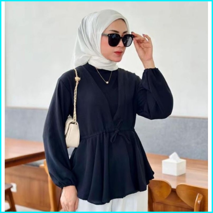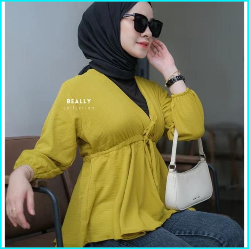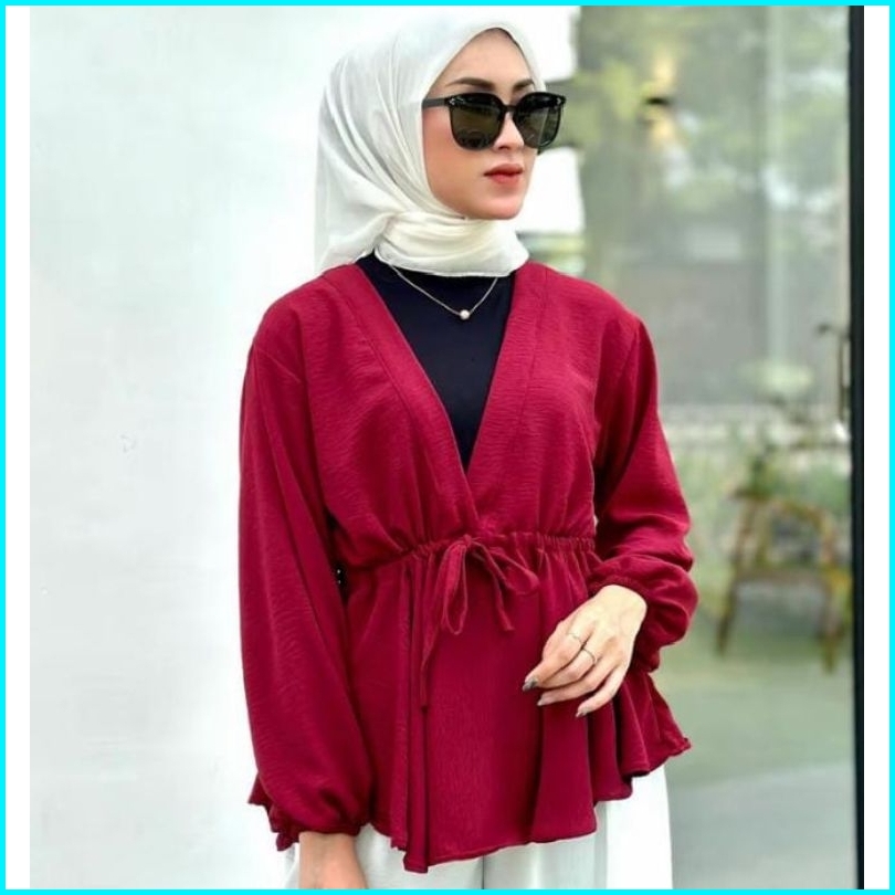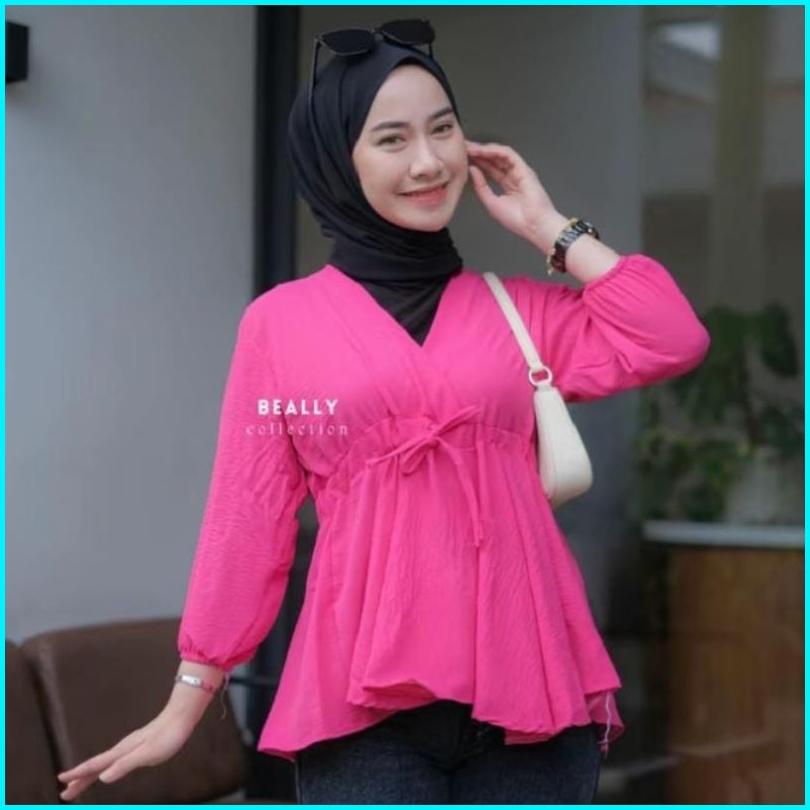 Leni Fashion99 Blouse Cessie Lengan Panjang Kekinian Atasan Top Wanita Jumbo Model Terbaru Blus Kemeja Cringkel Airflow