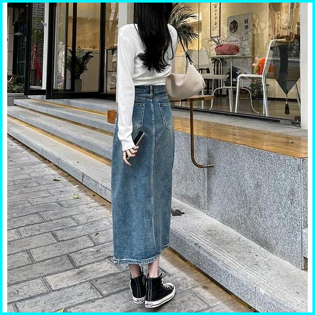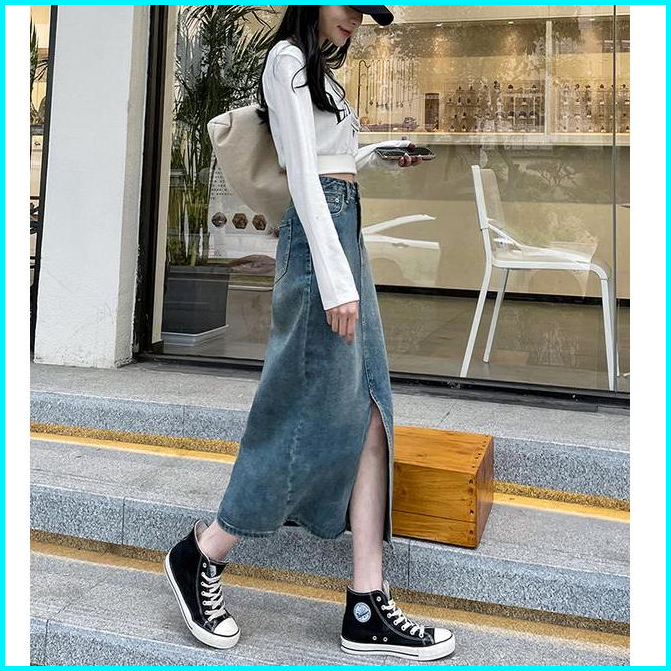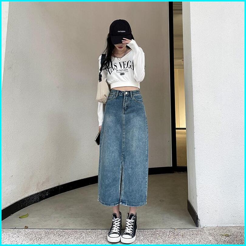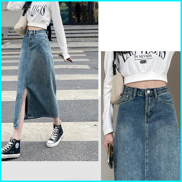 Keygirl Jumbo 5xl New Biru Highwaist Fashion Jeans Rok Wanita Korea Style Rok Jeans Belah Depan Skirt A Line