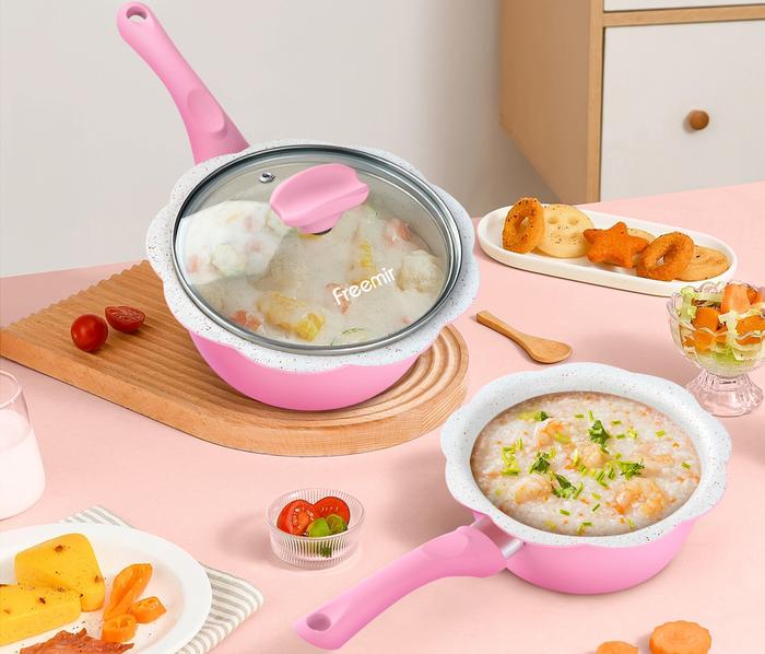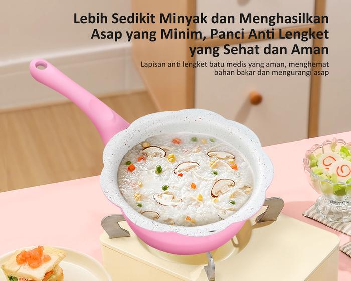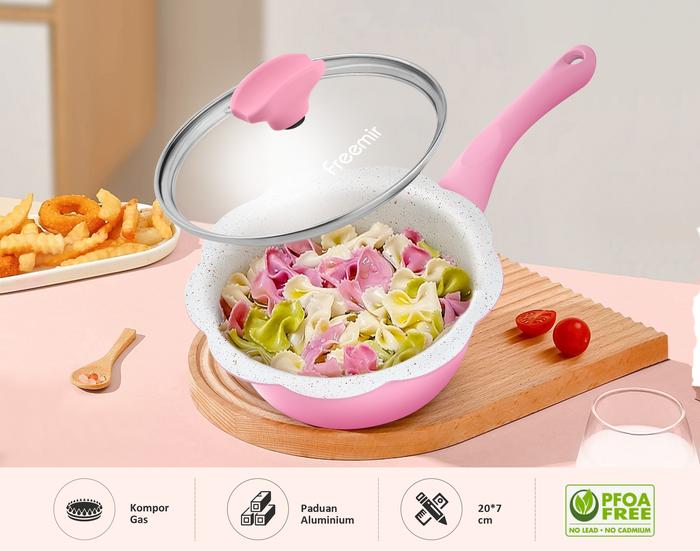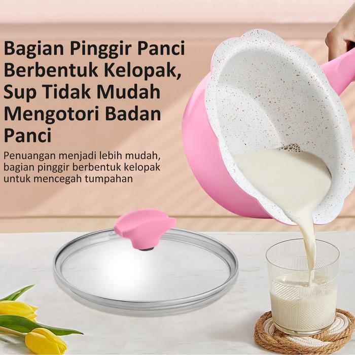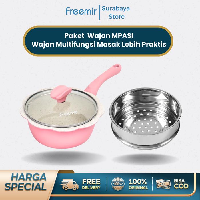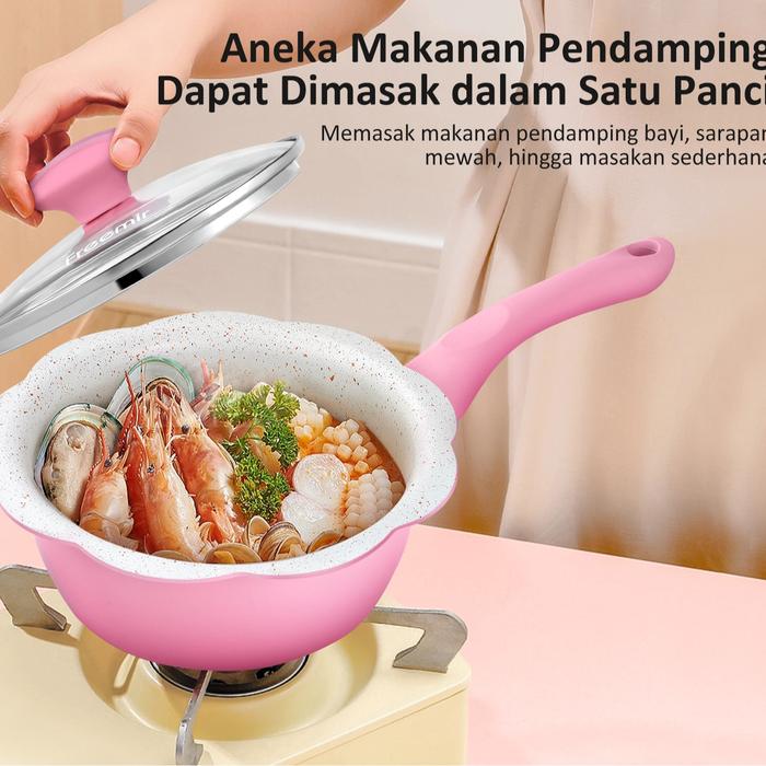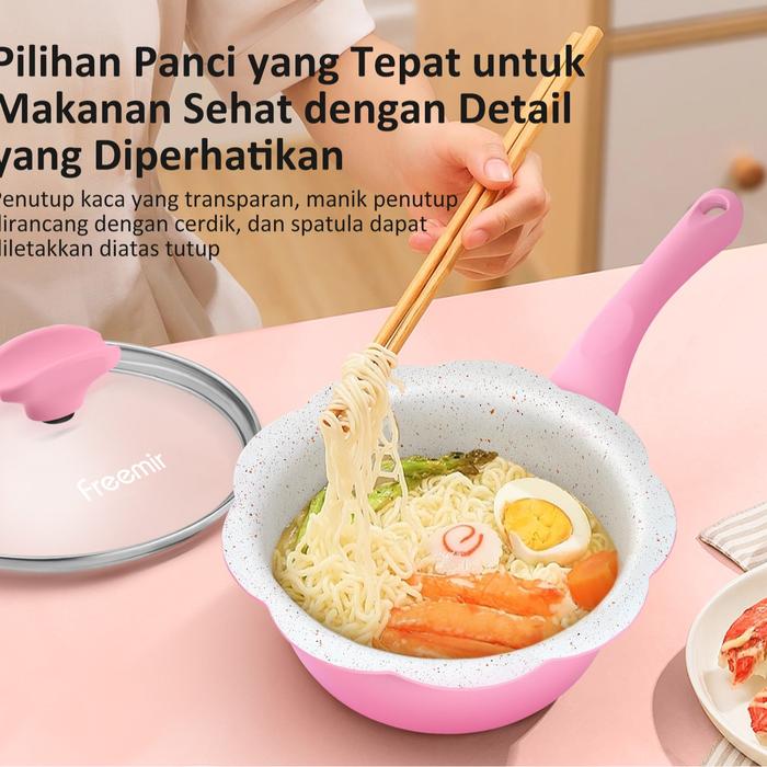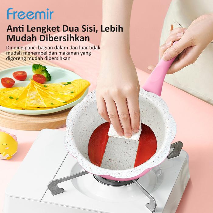 (SPECIAL MASIH NGEKOST) FREEMIR PANCI BUNGA SERIES PINK + KUKUSAN STAINLESS STEEL 16CM WAJAN ANTI LENGKET PANCI MPASI/SUSU GRANIT PREMIUM
