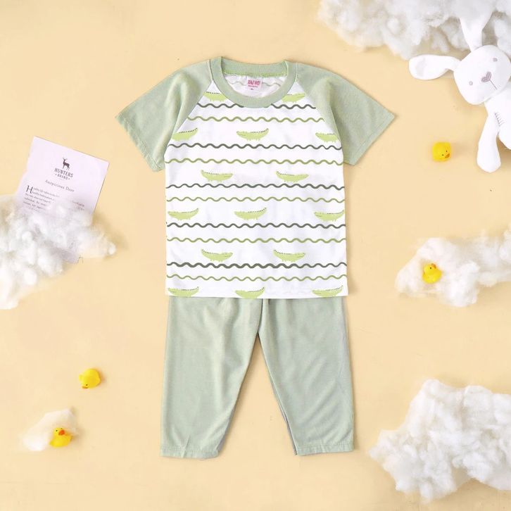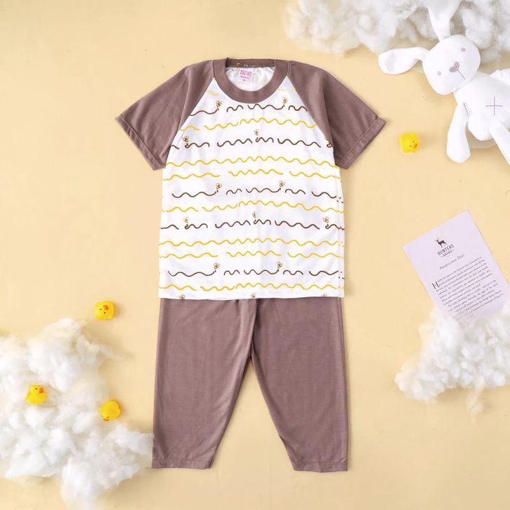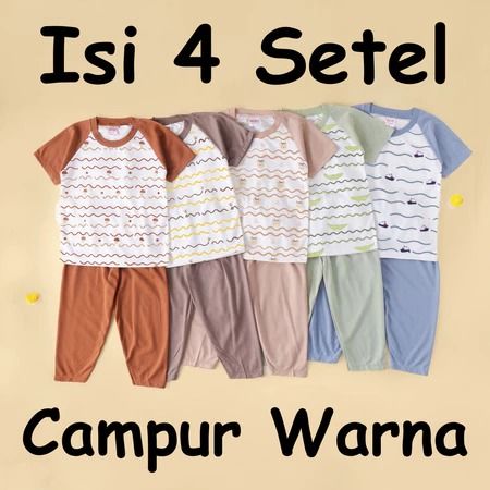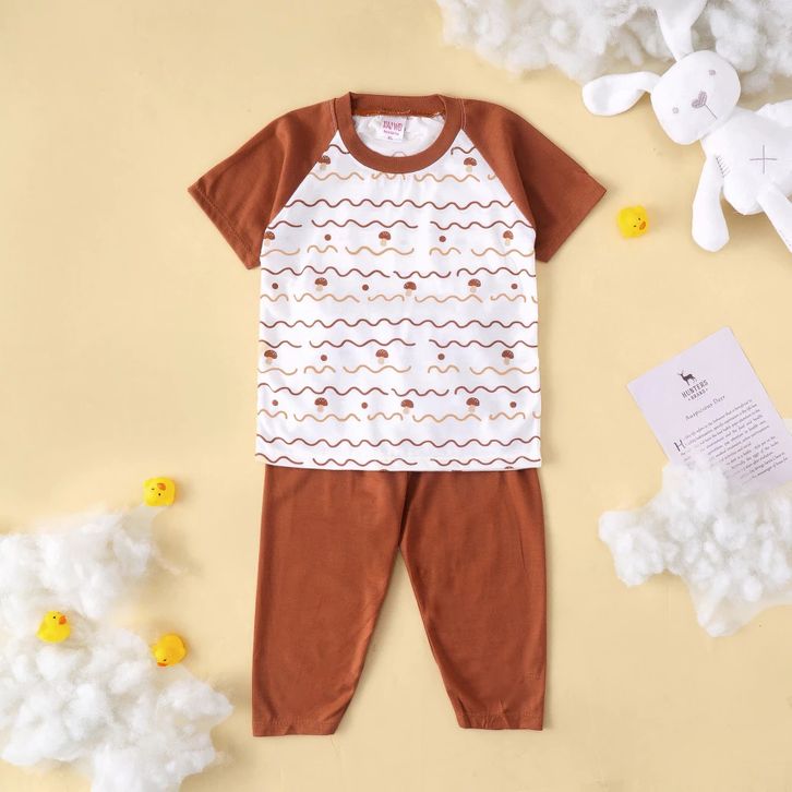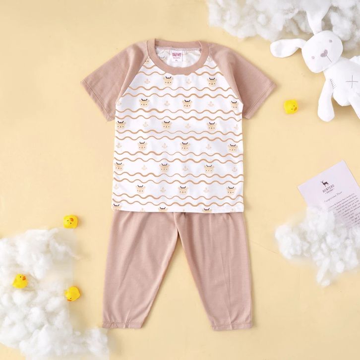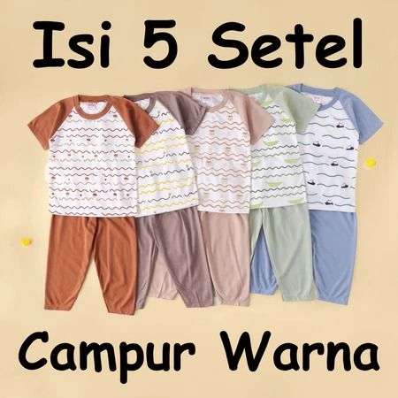Terlaris Setelan Anak & Bayi Laki Laki Raglan Stripe Animal Earthtone Series/ Baju Anak Laki Laki (ISI 5 SETEL)