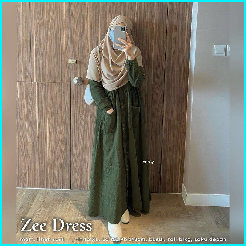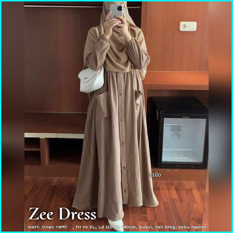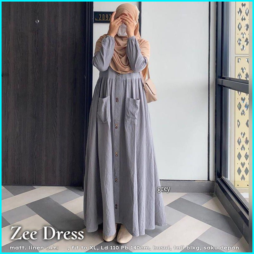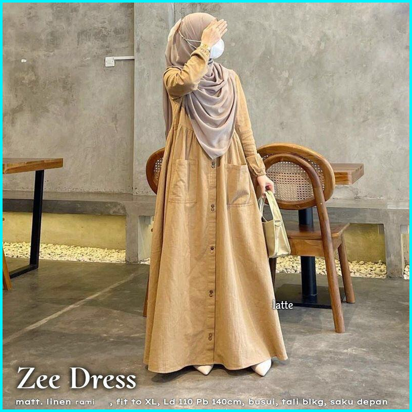New Zee Dress Gamis Wanita Terbaru Matt Linen Rami Fashion Wanita Kekinian Dress Terlaris Kf