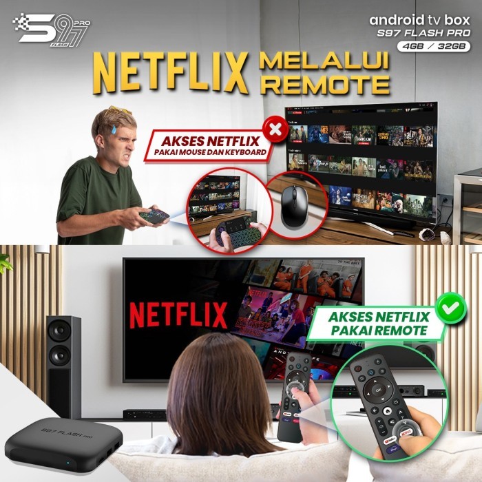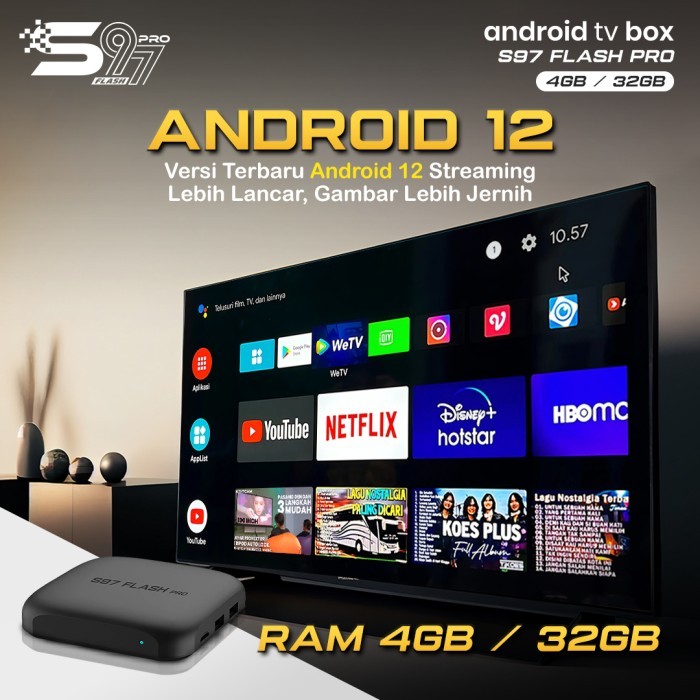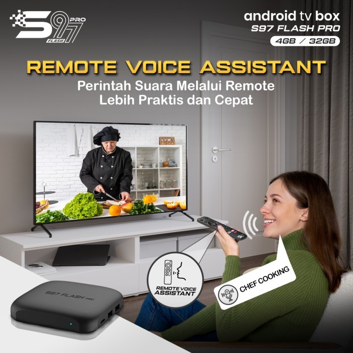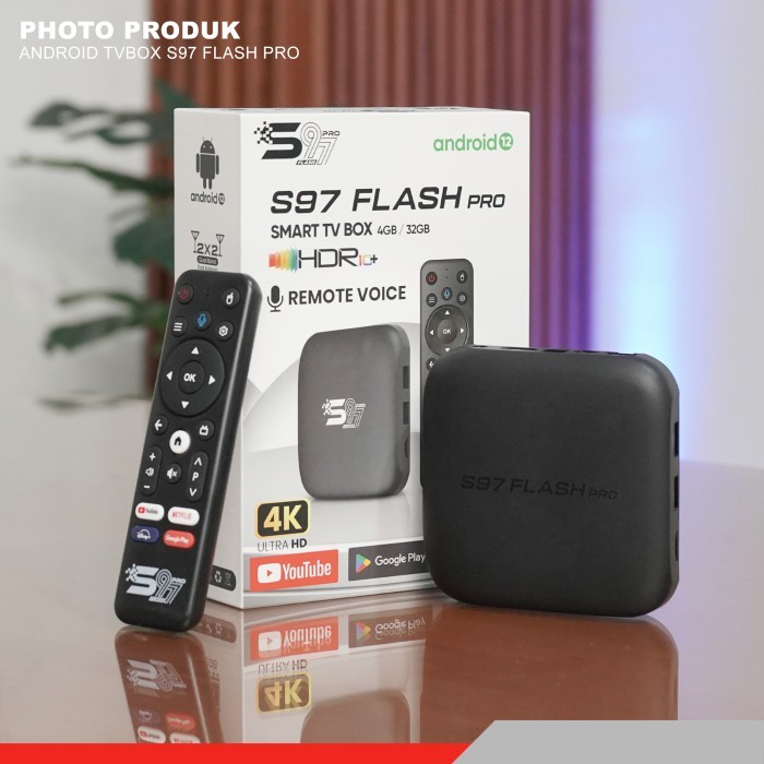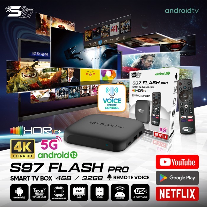 ANDROID TV BOX SMART 4K ANDROID 12 REMOTE VOICE BLUETOOTH 4GB+32GB 2.4G/5G MIRACAST SCREENMIRRORING TIPE S97 FLASHPRO