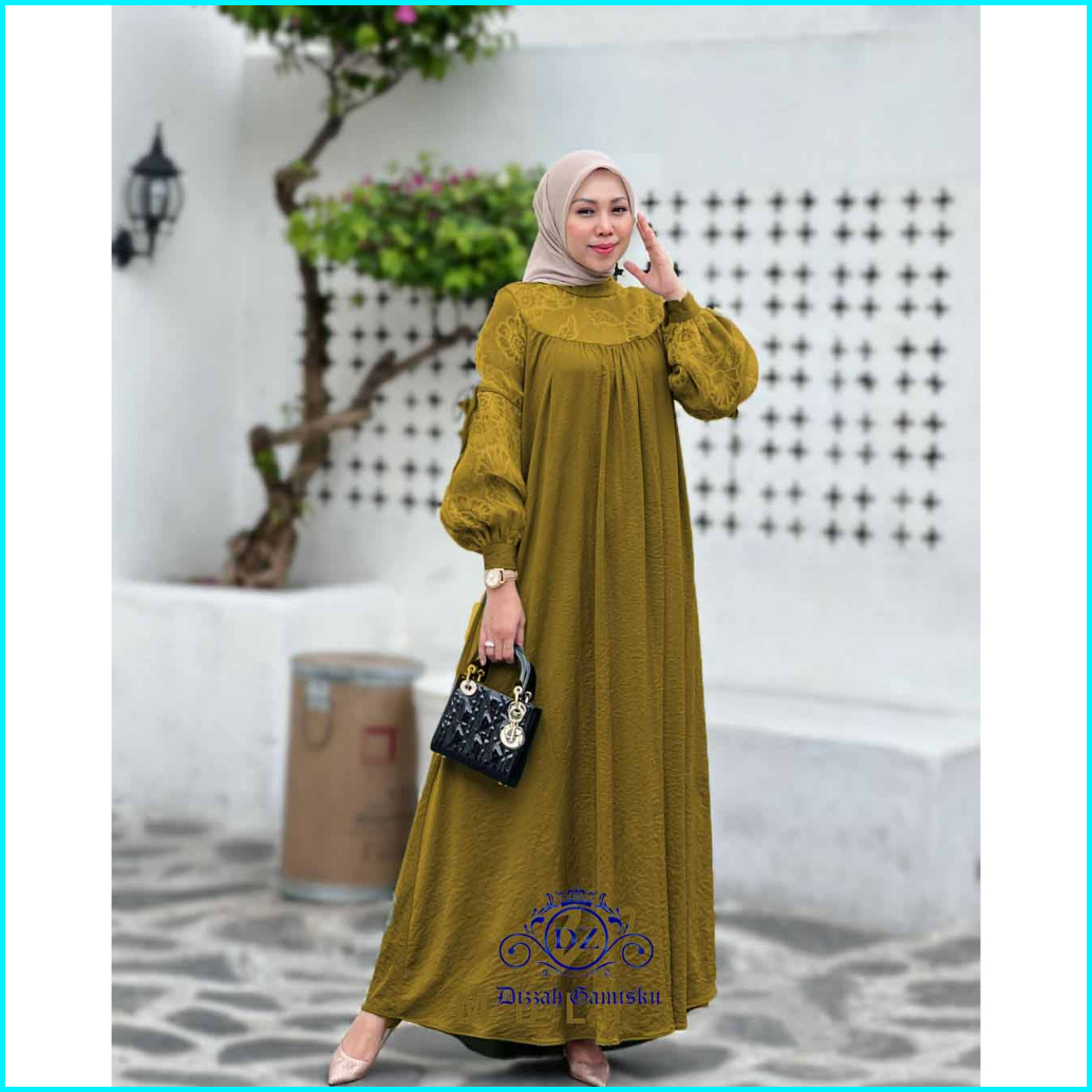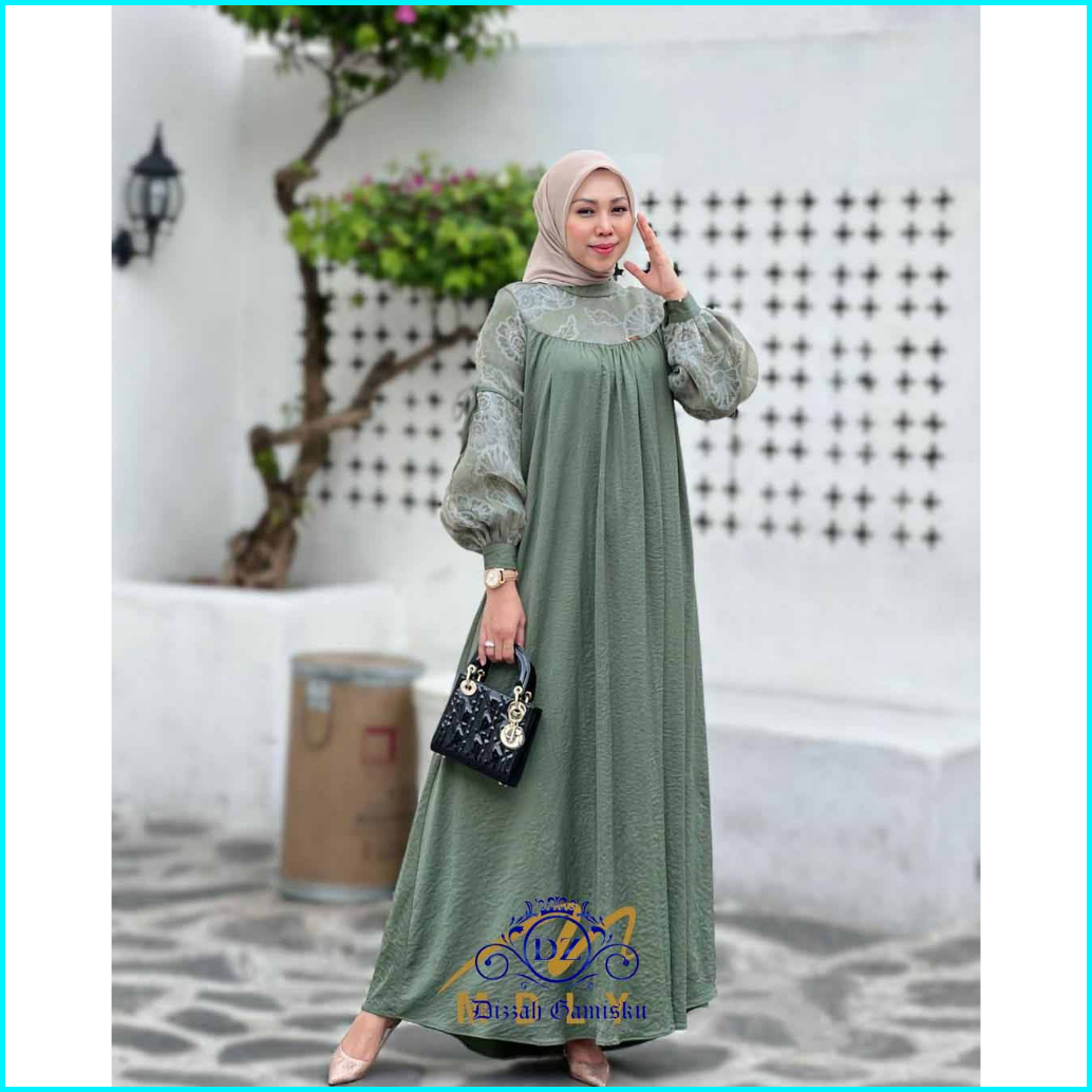 Dizzah Gamisku Andini Dress Gamis Polo Linen Mix Brukat Model Elegan