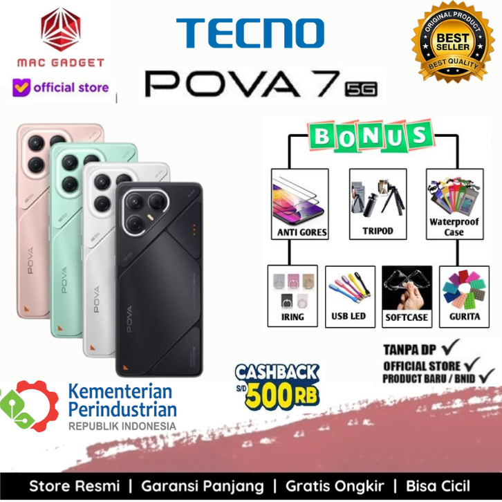 Official Store 🔥 TECNO POVA 7 -16GB*/256GB, 7000mAh + 45W, Mediatek Helio G100 Ultimate, 120Hz Vivid Display , 108MP