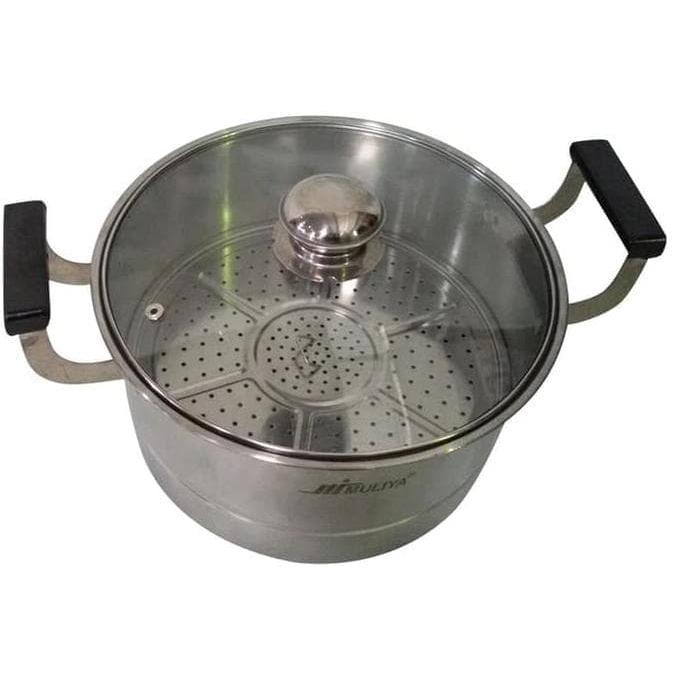 PANCI STAINLESS WITH STEAMER / KUKUS TUTUP KACA 24 CM