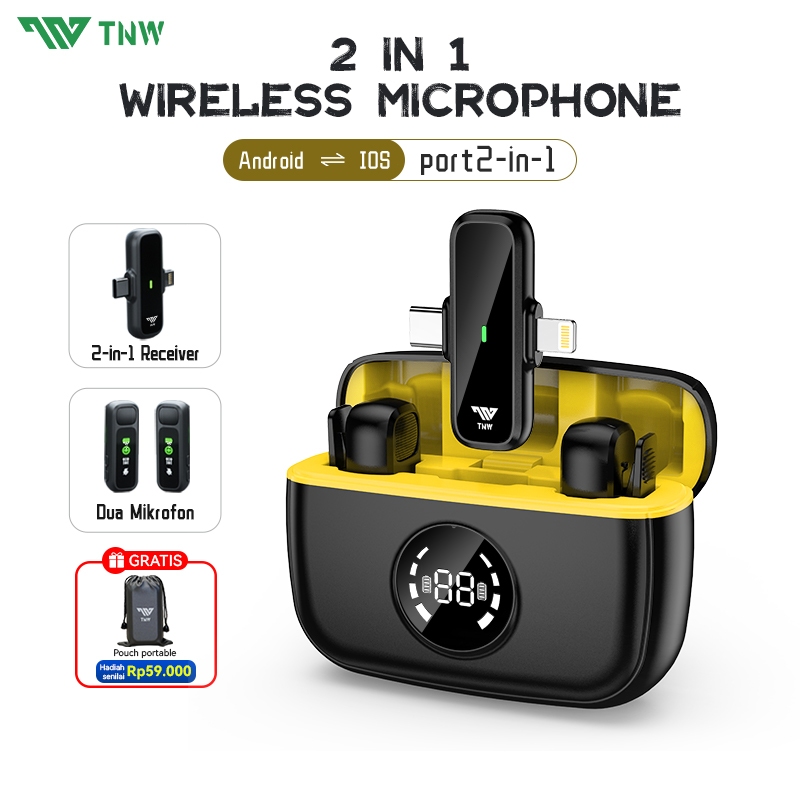 Tnw A13 Wireless Microphone 2-In-1 Clip On Mic Wireless Dual Lavalier Mikrofon Iphone Dan Charging Case Bluetooth Mikrof