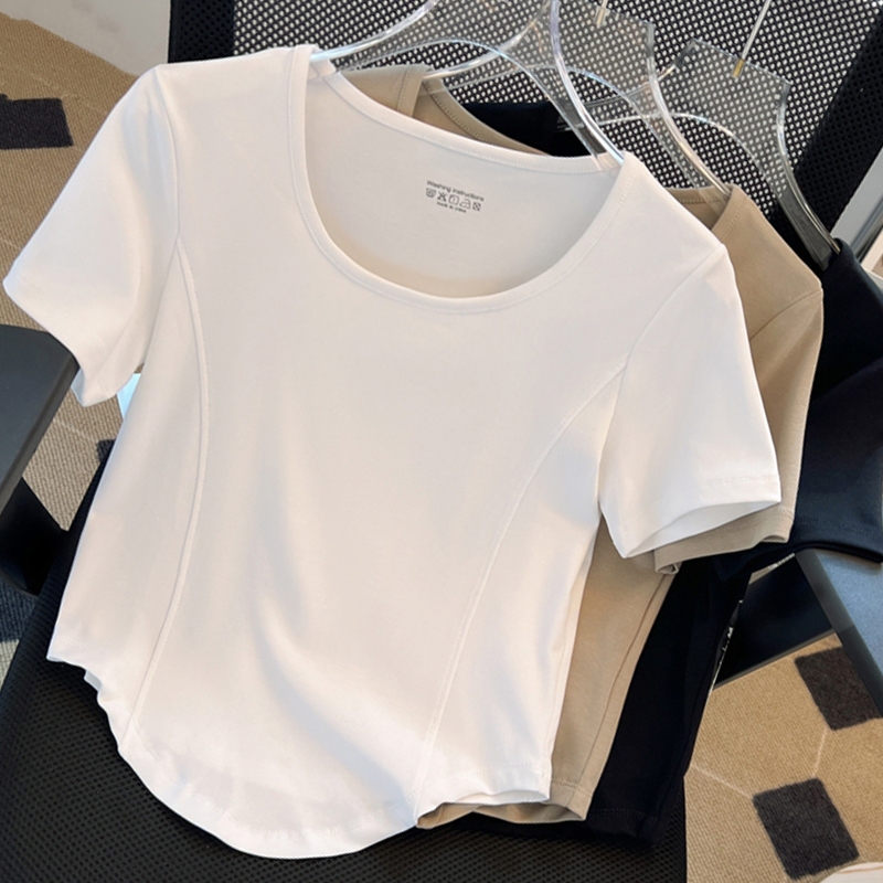 KAOS PUTIH CROP WANITA KAOS CROP WANITA KOREA BAJU KAOS RIB BAJU PENDEK WANITA CROP CROP POLOS WANITA
