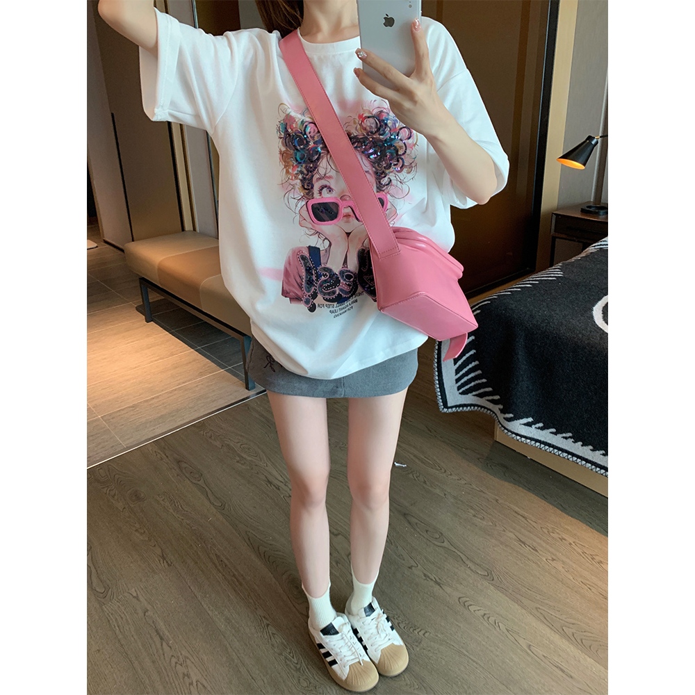 BASIQUE PUTIH BAJU KAOS OVERSIZE KAOS CUTE GIRL KOREAN STYLE BAJU ATASAN WANITA TERBARU 100 PERSEN COTTON