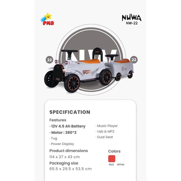 Mobil Aki Anak NUWA dari PMB NW22 NW-22 Mobil Cas Charge Kendaraan Mainan Kereta Motor
