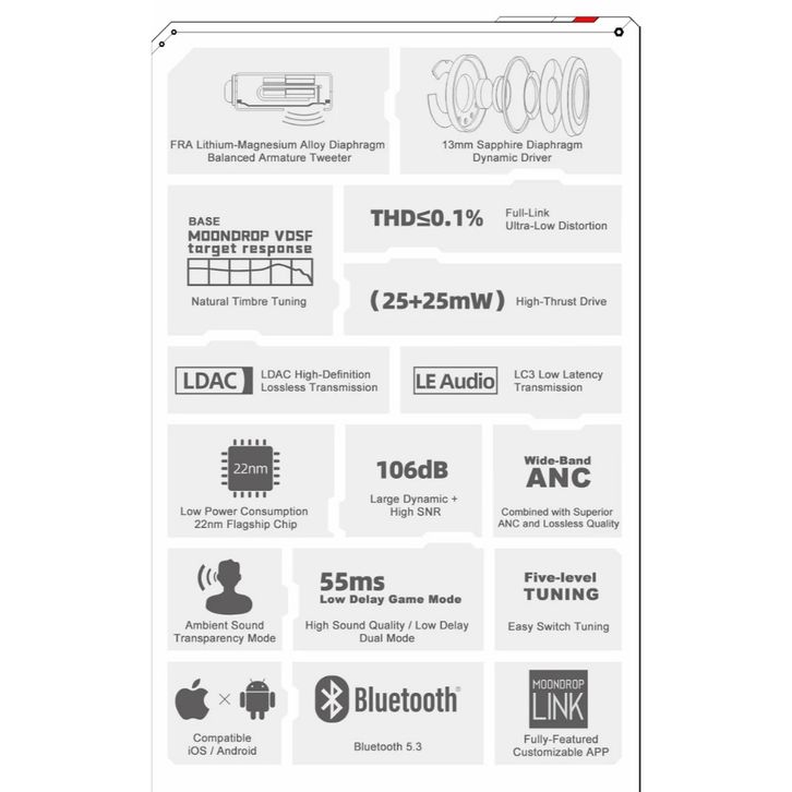 MOONDROP ULTRASONIC Bluetooth 5.3 ANC Ambient -e Hybrid True Wireless TWS