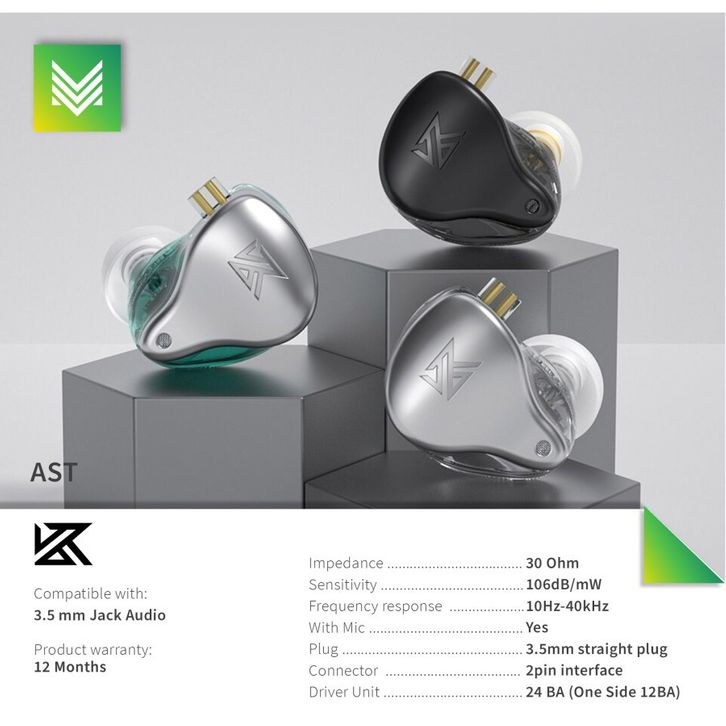 KZ AST with Mic 12BA Units 24 Balanced Armature HIFI In Ear Earphone