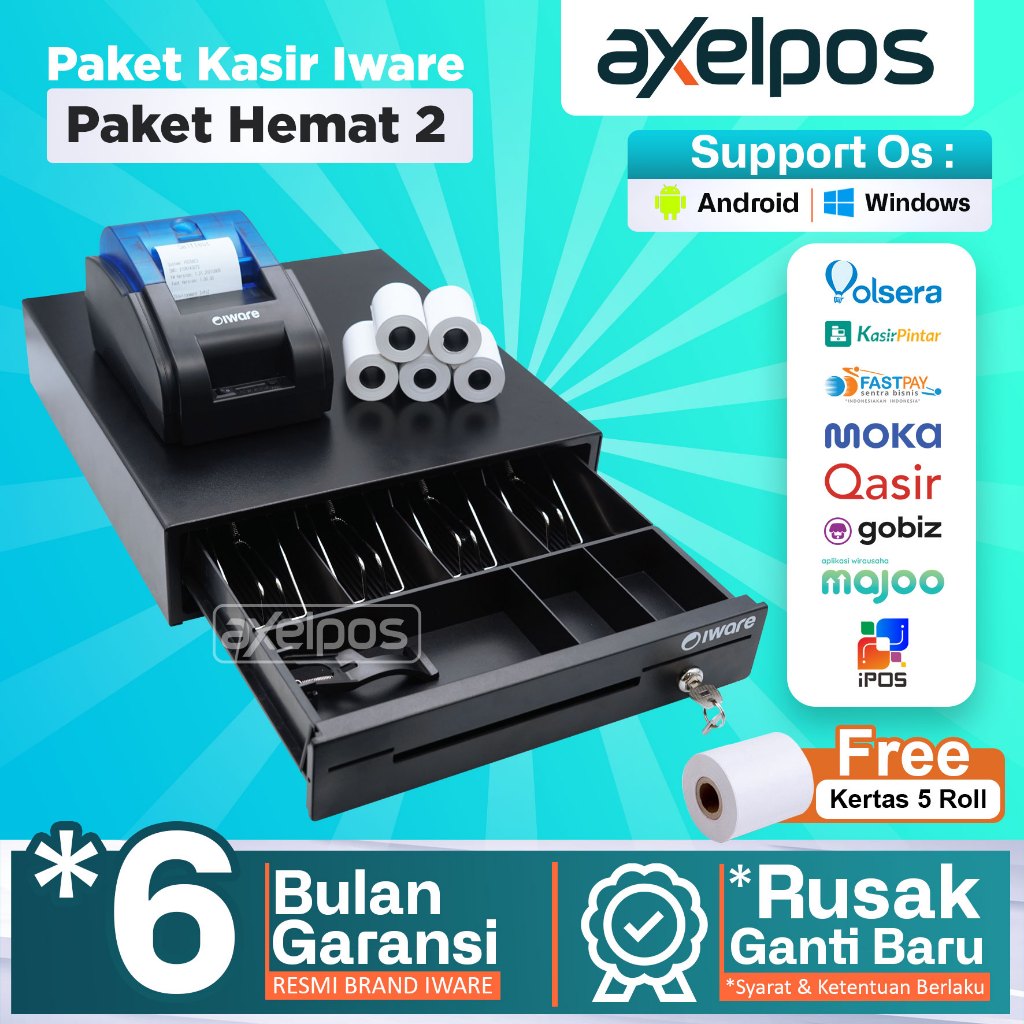 PAKET ALAT KASIR ANDROID PRINTER BLUETOOTH - CASH DRAWER 4 SLOT - FREE KERTAS THERMAL 5 ROLL