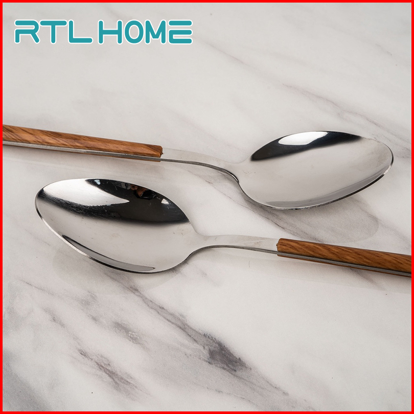 Rtl Sendok Makan Tebal Isi 6pcs Gagang Motif Kayu Stainless Steel Berkualitas