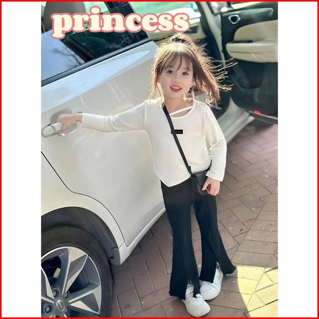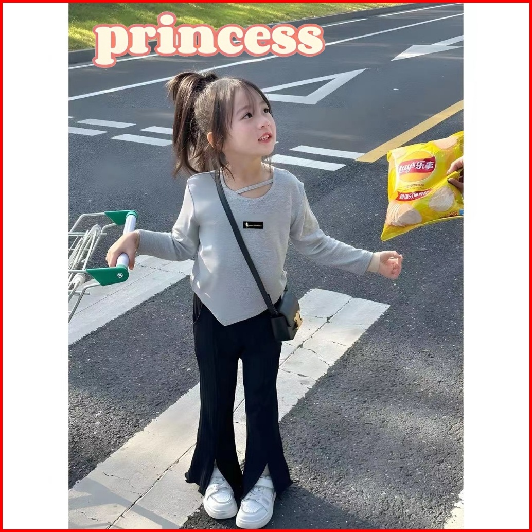 Princess Kesli 2-11 Tahun Croptop Polos Lengan Panjang Atasan Kaos Anak Perempuan Kids Katun