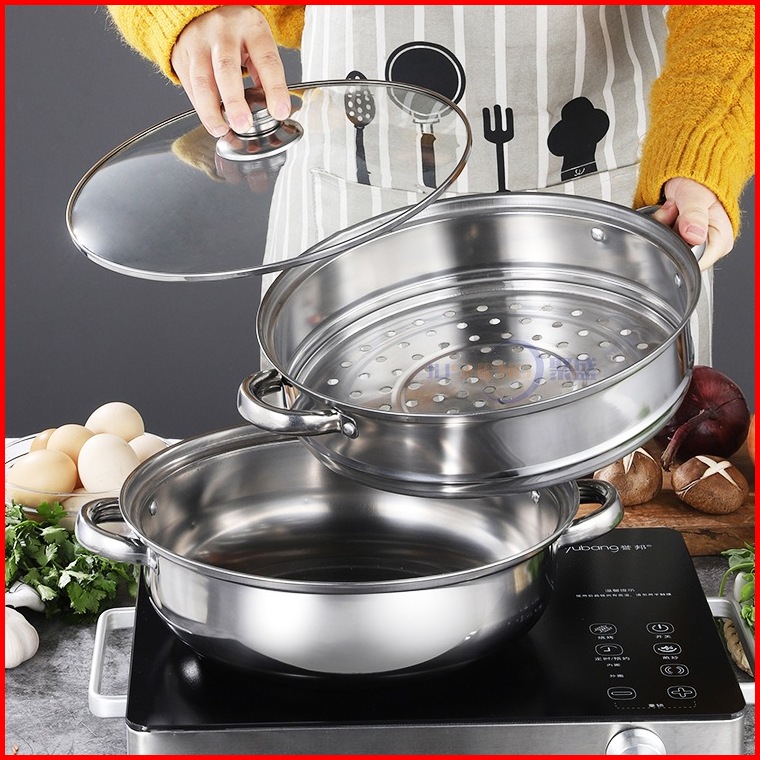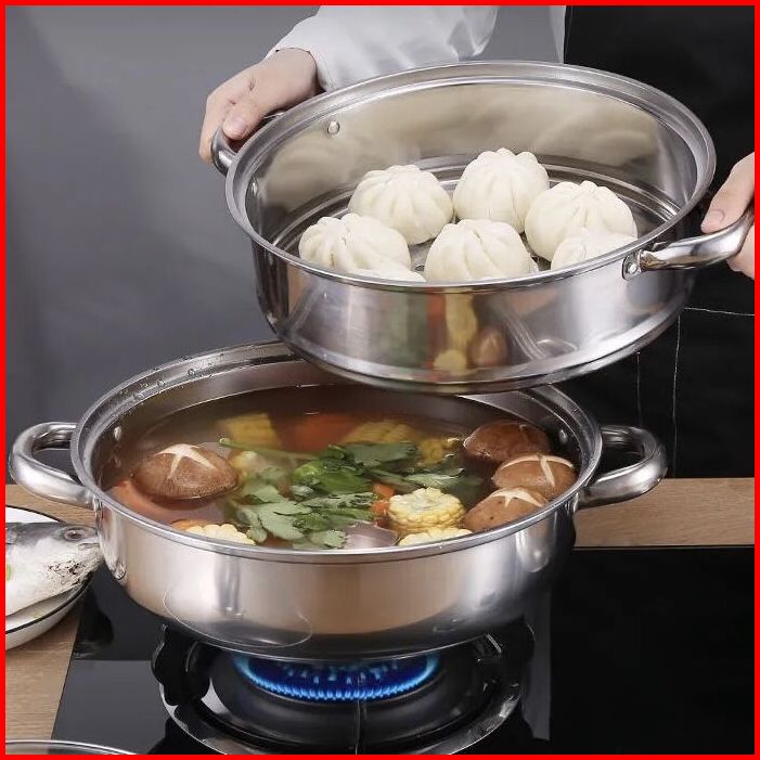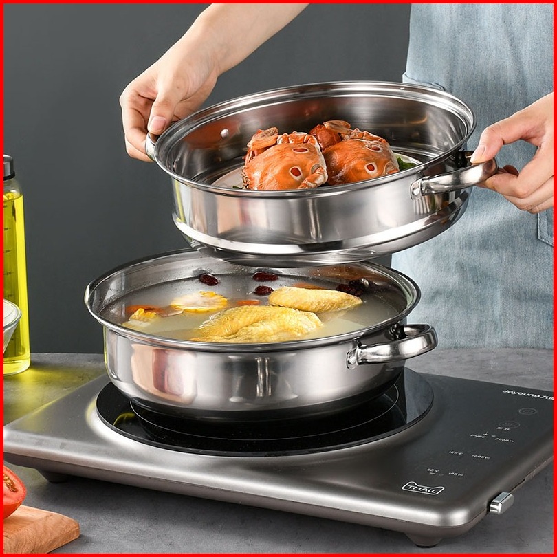 Panci Kukus 2 Susun Panci Set Steamer Stainless Kukus Ikan Siomay Bakpao Panci Kukus Kitchenware
