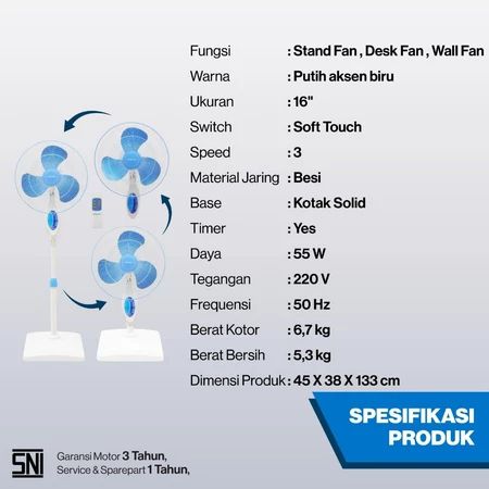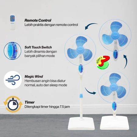KIPAS ANGIN MIYAKO BIRU REMOTE KONTROL 16 INCH 3IN1 MEJA DINDING BERDIRI TERMURAH