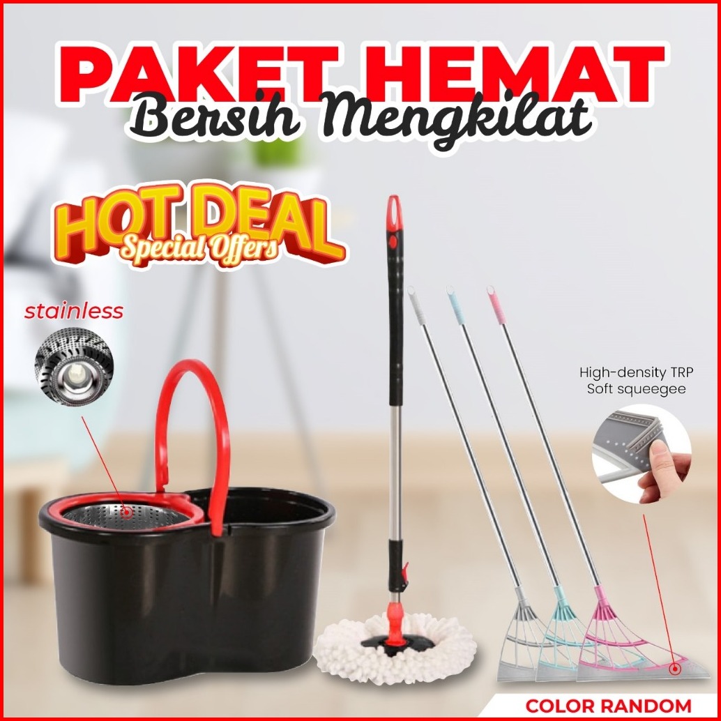 Paket Bundle Hemat Alat Pel Lantai Ultra Mop Aclima Spin Mop Stainless Sapu Korea Magic Floor Sweeper Sapu Magic Broom -