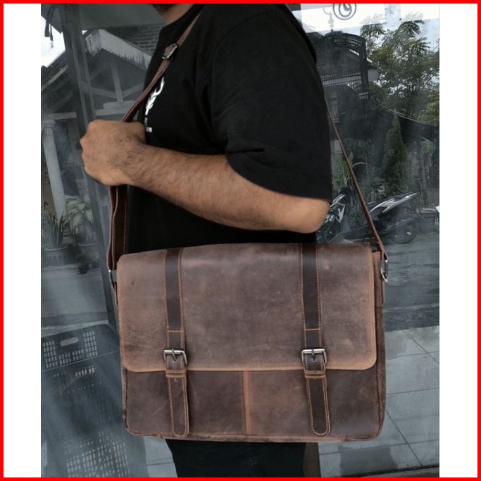 Tas Kerja Kulit Asli Laptop Massenger Premium Kulit Sapi Asli Crazy Horse