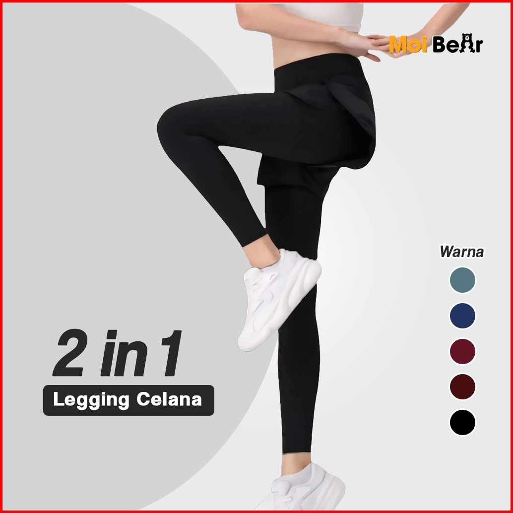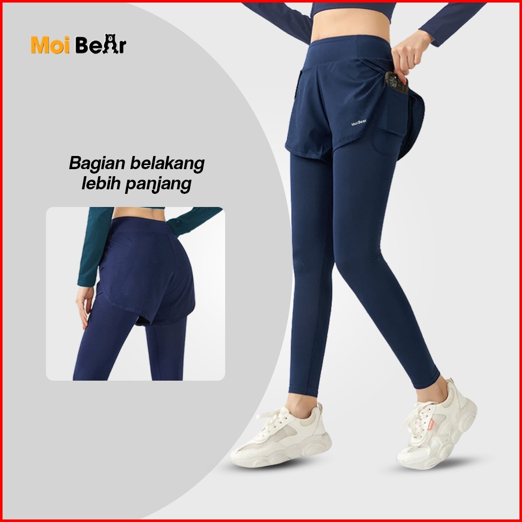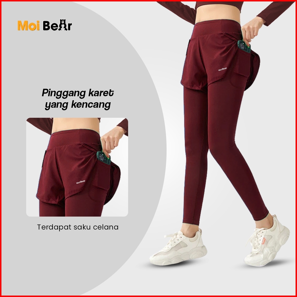 Moi Celana Legging Running Pendek 2in1 Pria Wanita Legging Hotpants Panjang Olahraga Running Lari Fitnes Senam Zumba Bad