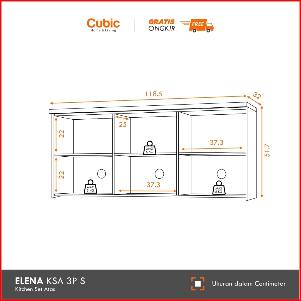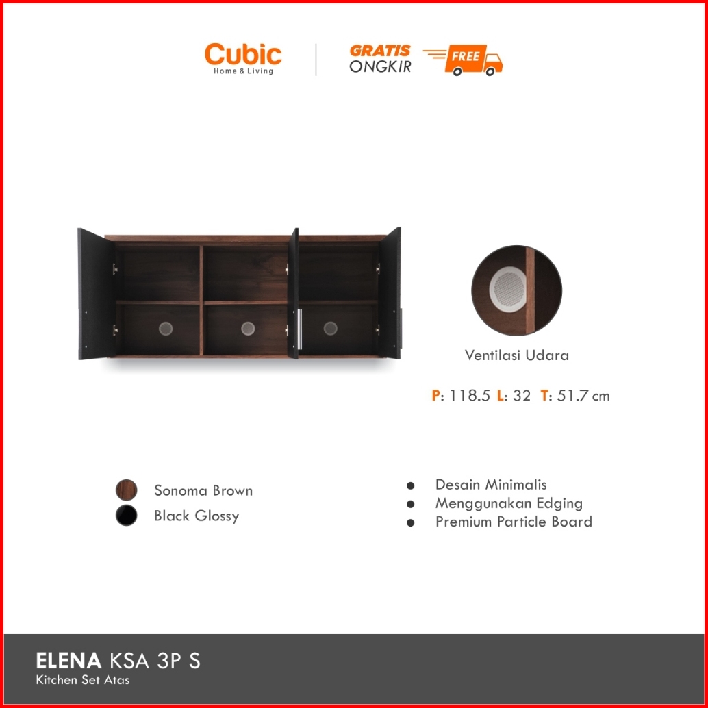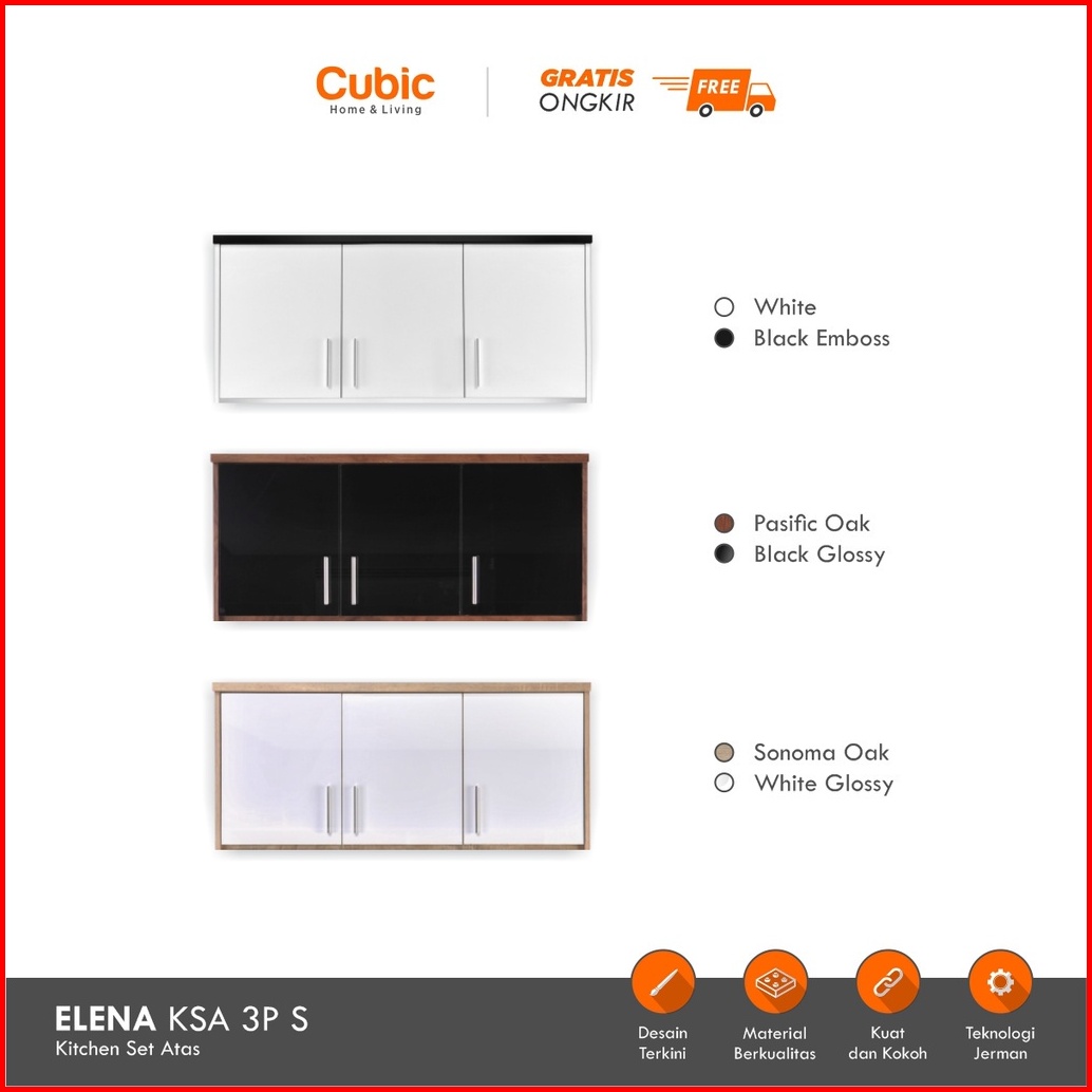 Cubic Kitchen Set 3 Pintu Minimalis Rak Atas Dapur Kecil Elena Ave Ksa 3p S