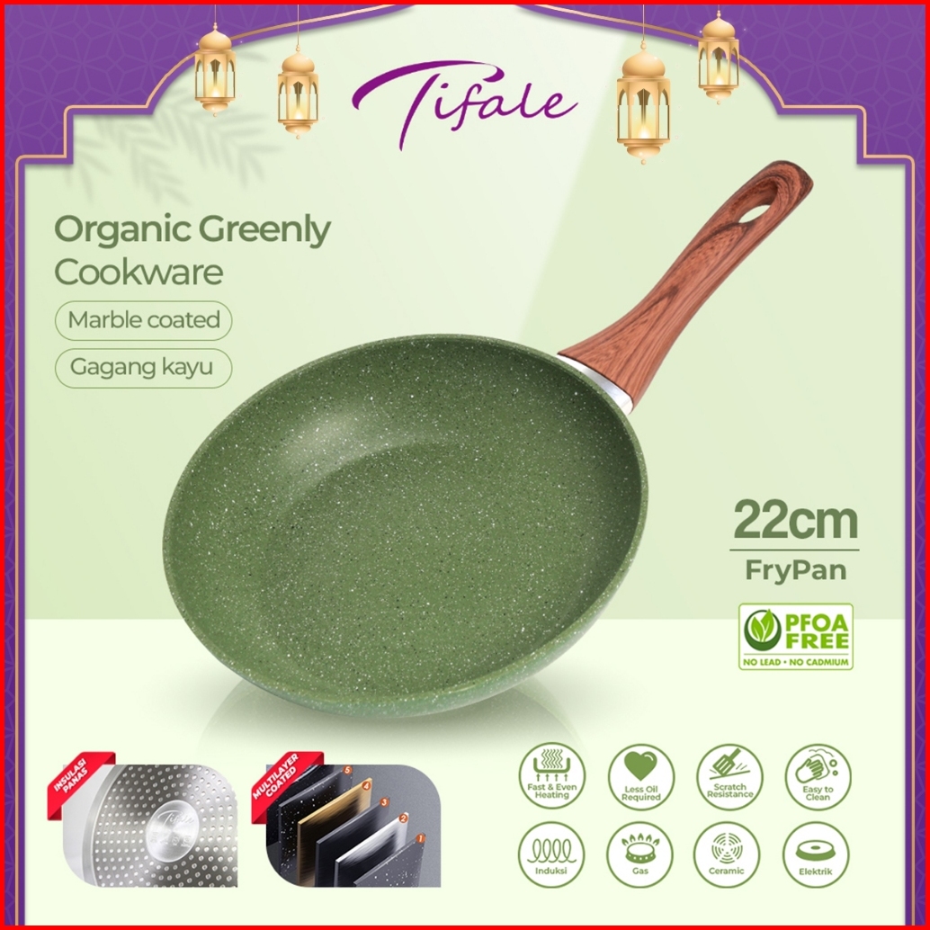 Tifale Organic Greenly Cookware Marble Coated Anti Lengket Handle Bakelite Silicone Anti Leleh Avocado Pan