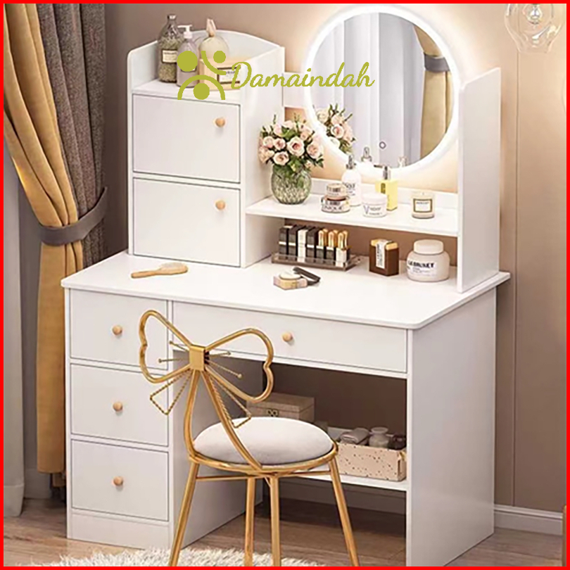 Damaindah Set Meja Rias Kursi Pita Meja Rias Set Bangku Meja Rias Lampu Led Meja Rias Dengan Cermin Meja Rias Minimalis