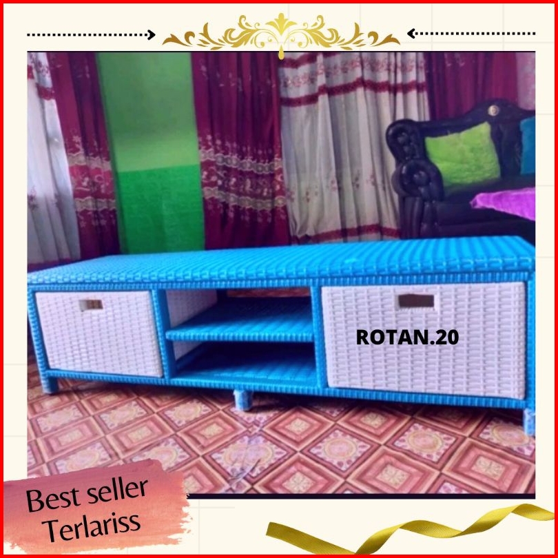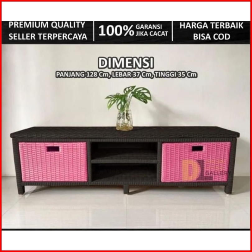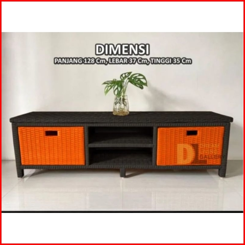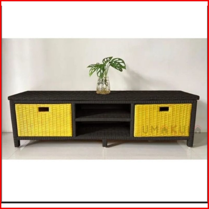 Redy Stok Meja Tv Rotan Sintetis Laci 2 Cd