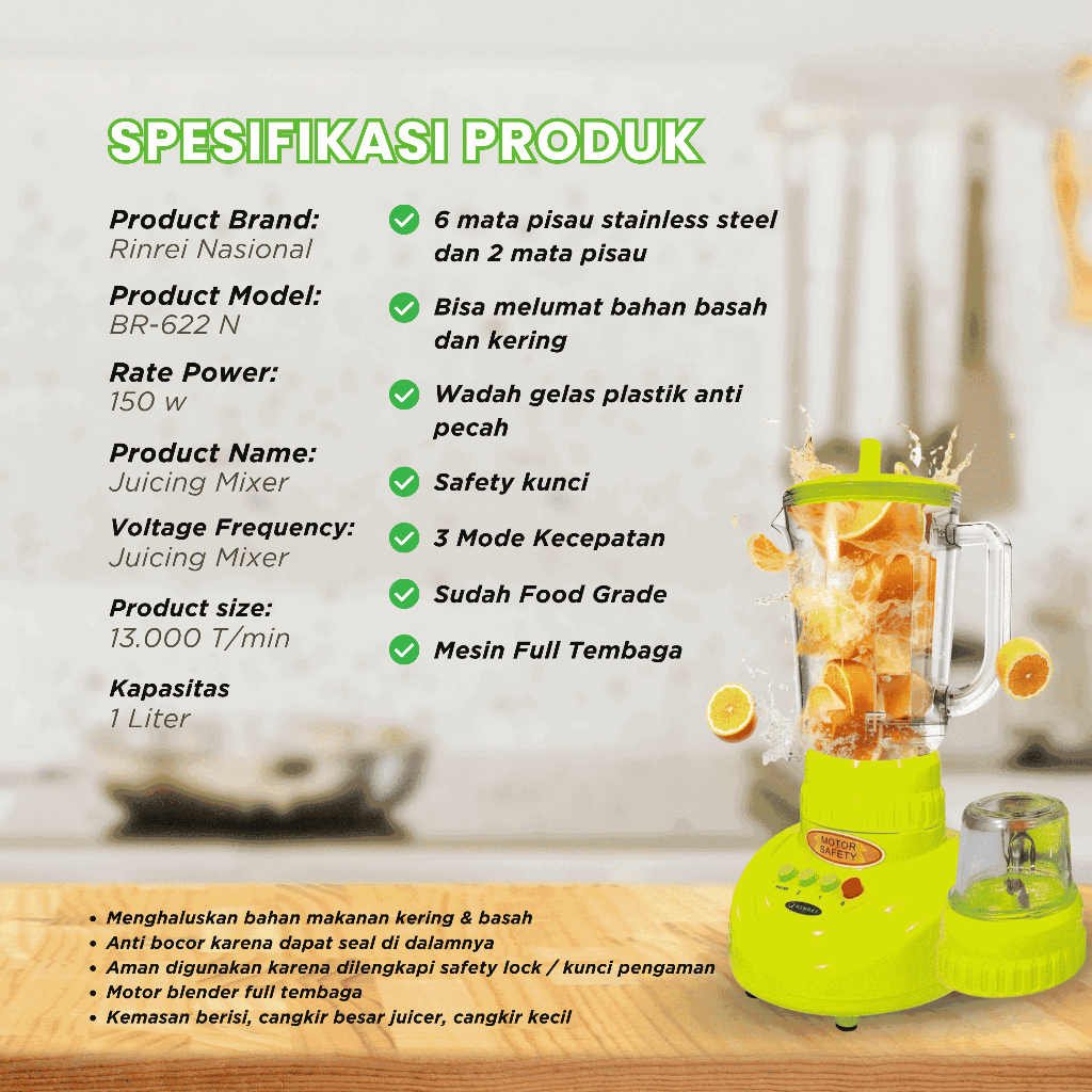 BLENDER PLASTIK 4IN1 BR 622N KAPASITAS 1 LITER SET PORTABLE STAINLESS FOOD GRADE CHOPPER BUMBU MULTIFUNGSI GARANSI RESMI