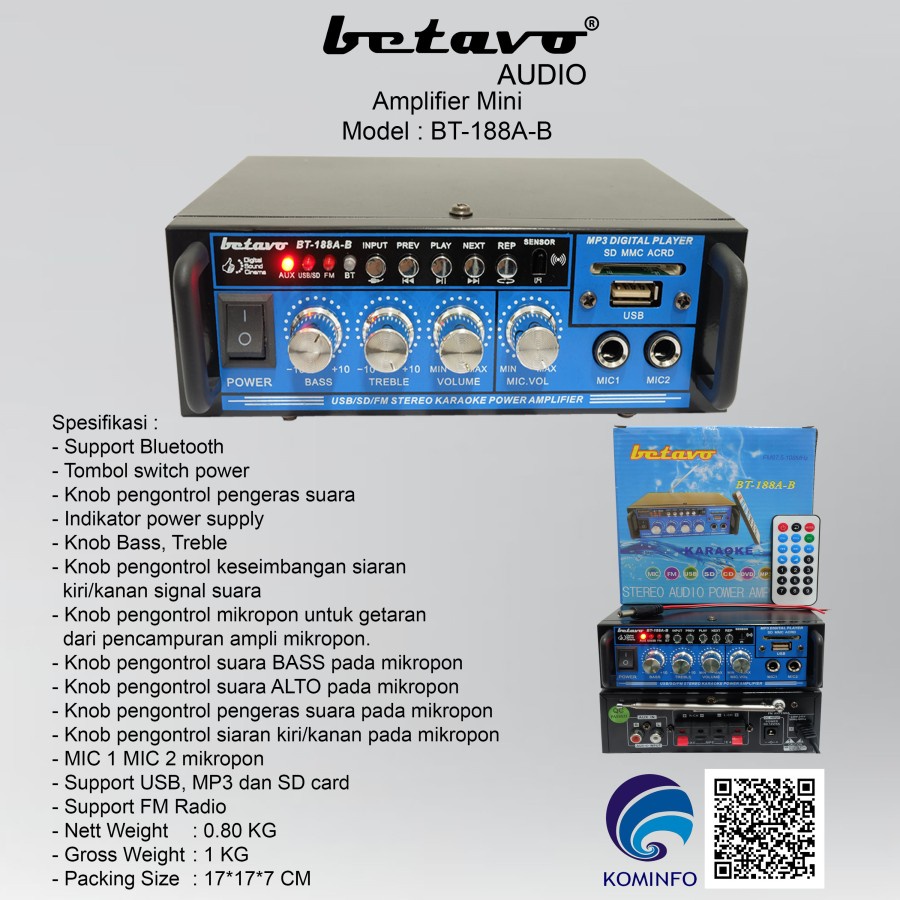 Betavo Amplifier Mini Bluetooth BT-188A-B Ampli Karaoke ampli musik besar ampli musik 12volt ampli musik bluetooth ampli