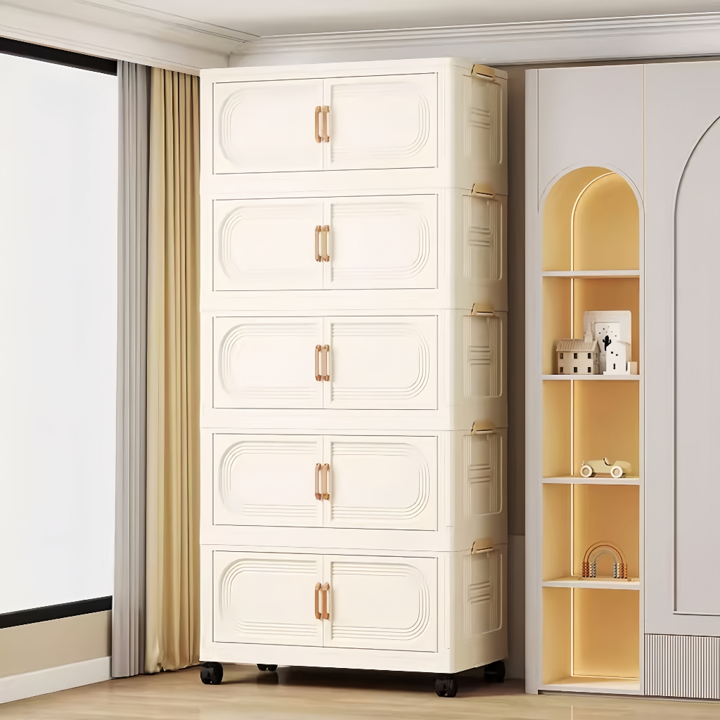 Lemari Pakaian Plastik Estetik Kabinet Lipat Portabel Lemari Baju Bayi Anak Plastik Lemari Pakaian Estetik Minimali