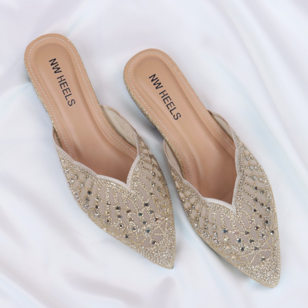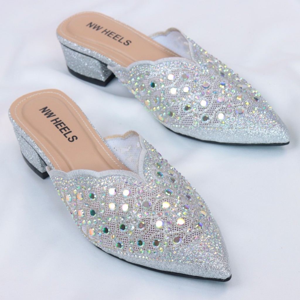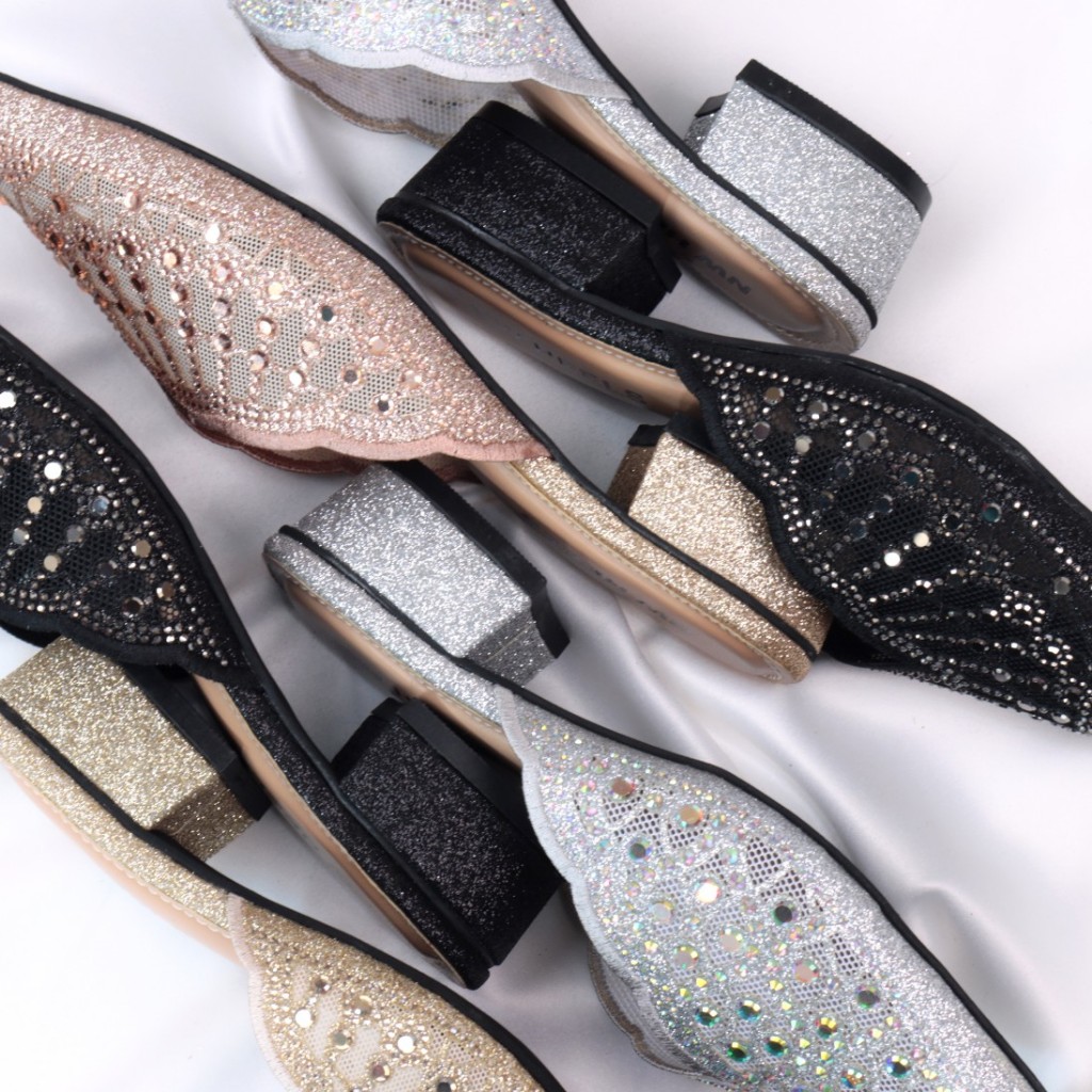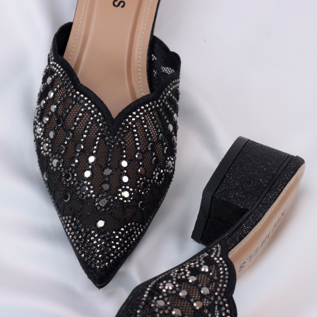 Sepatu Sandal Kondangan Diamond Wanita Import Hak 3 cm Mules Pesta Pengantin