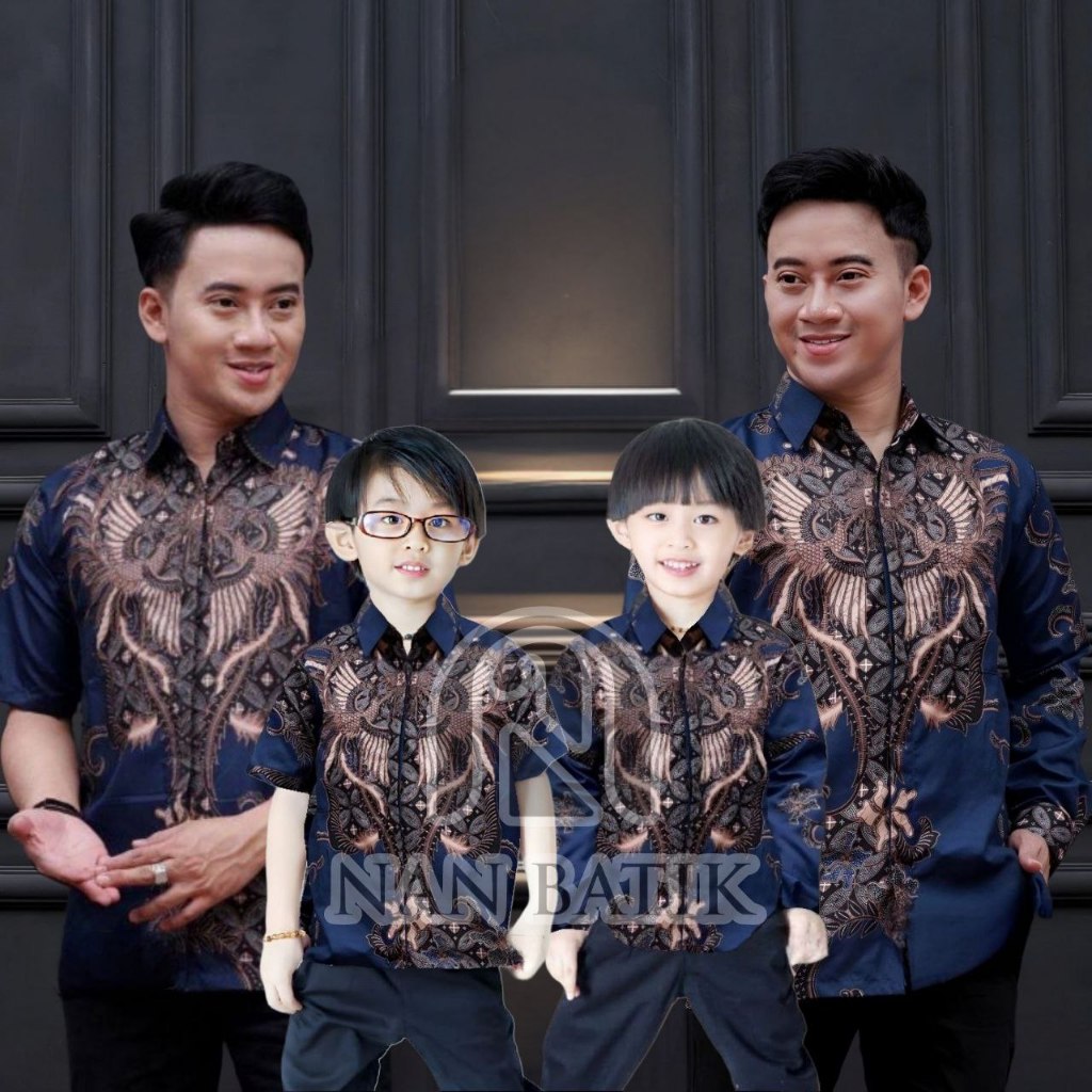 TERBARU KEMEJA BATIK PRIA BATIK LAYANGAN BIRU NAVY BIRU DONGKER batik ayah dan Batik anak cowok