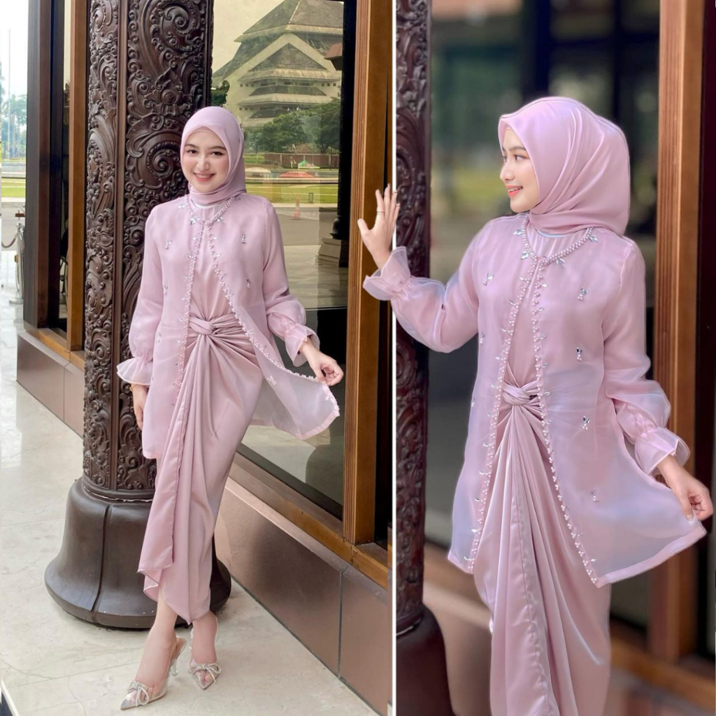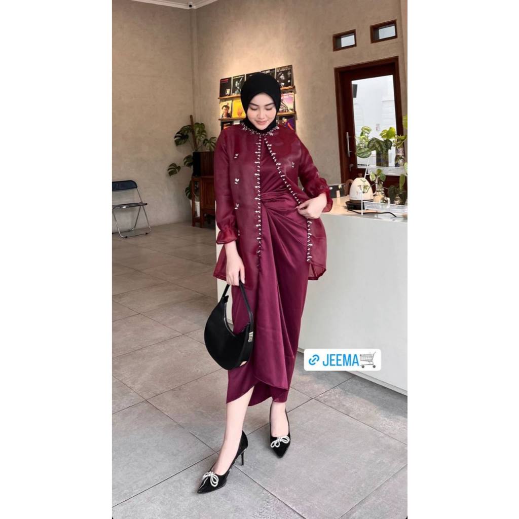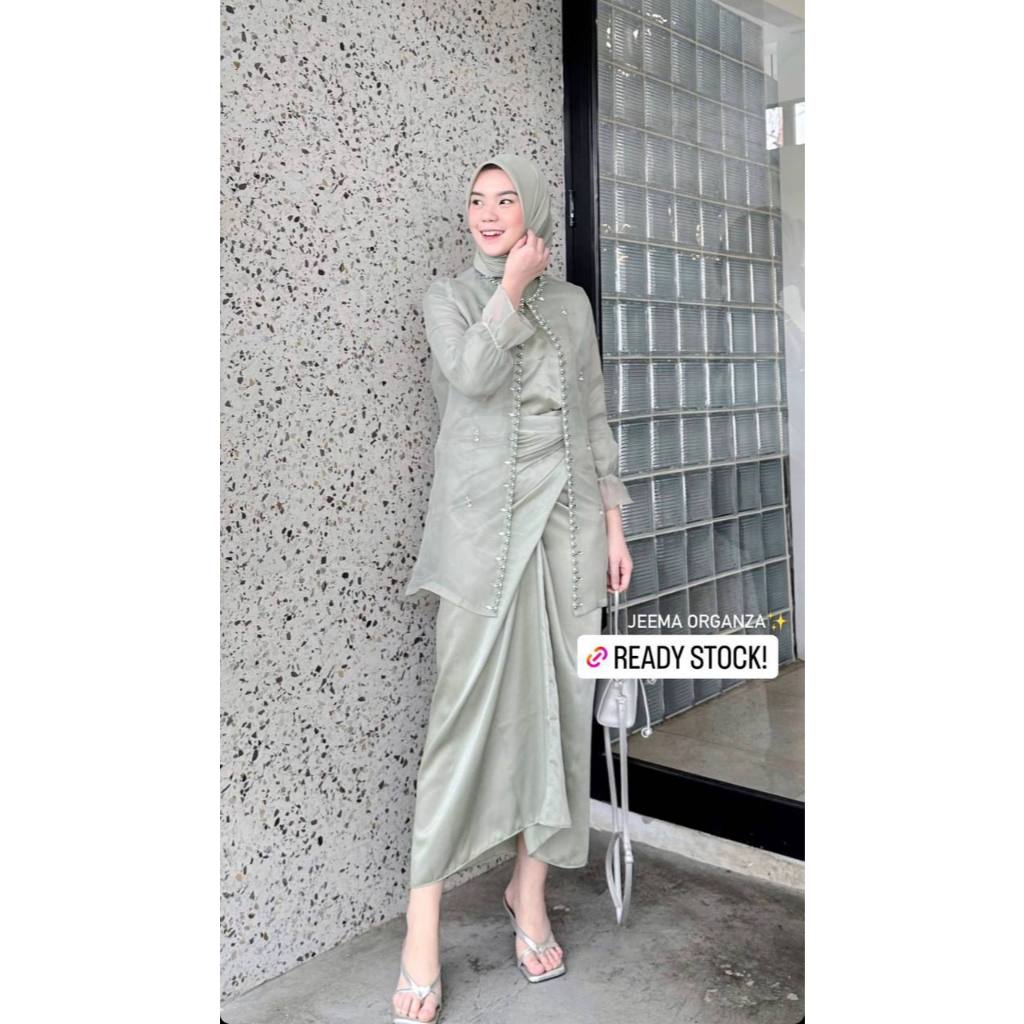 Oneset Jemma Organza Terbaru Setelan Kondangan Kekinian Rok Lilit Bahan Maxmara ORIGINAL BEST SELLER