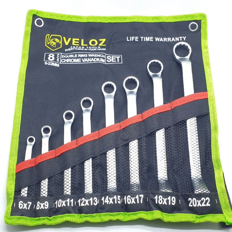 Veloz Kunci RING RING SET NEW 6~22mm 8Pcs Chrome Vanadium Steel Kualitas Premium