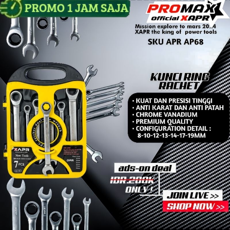 Promo Rachet Ringpas Apr Japan AP68+ Kunci Set Ring Pas 7PC Koper 8mm - 19mm Lebih Kuat Dari T3Kiro