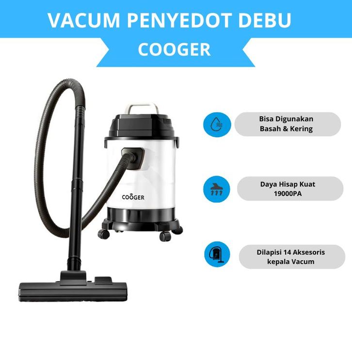Vacum Penyedot Debu Cooger 18l Wet And Dry 14 In 1 Vacuum Cleaner 19000 Pa 500w Multivarian Multifungsi Garansi Resmi