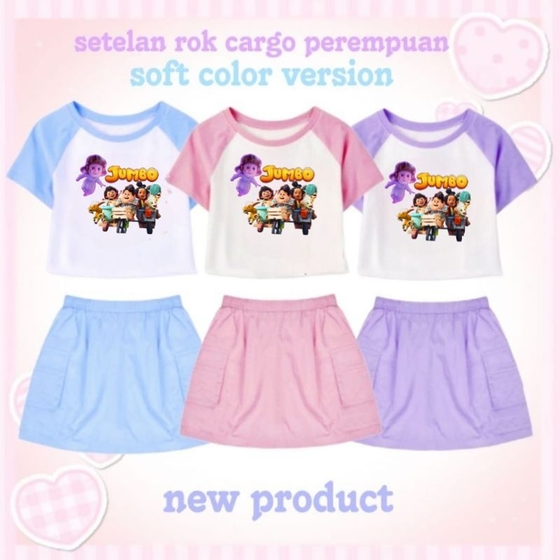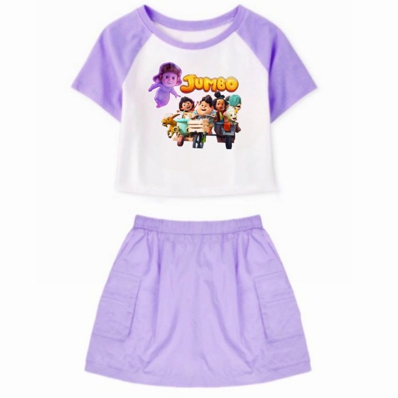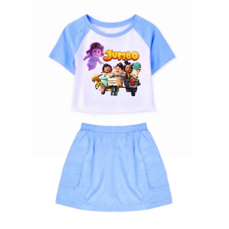 setelan kaos rok cargo anak gambar film anak animasi JUMBO