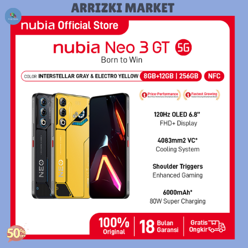 [Star] HP Gaming nubia Neo 3 GT 5G RAM 20 GB (8 +12 GB) + ROM 256 GB 6000mAH Super Fast Charging 80W Garansi Resmi